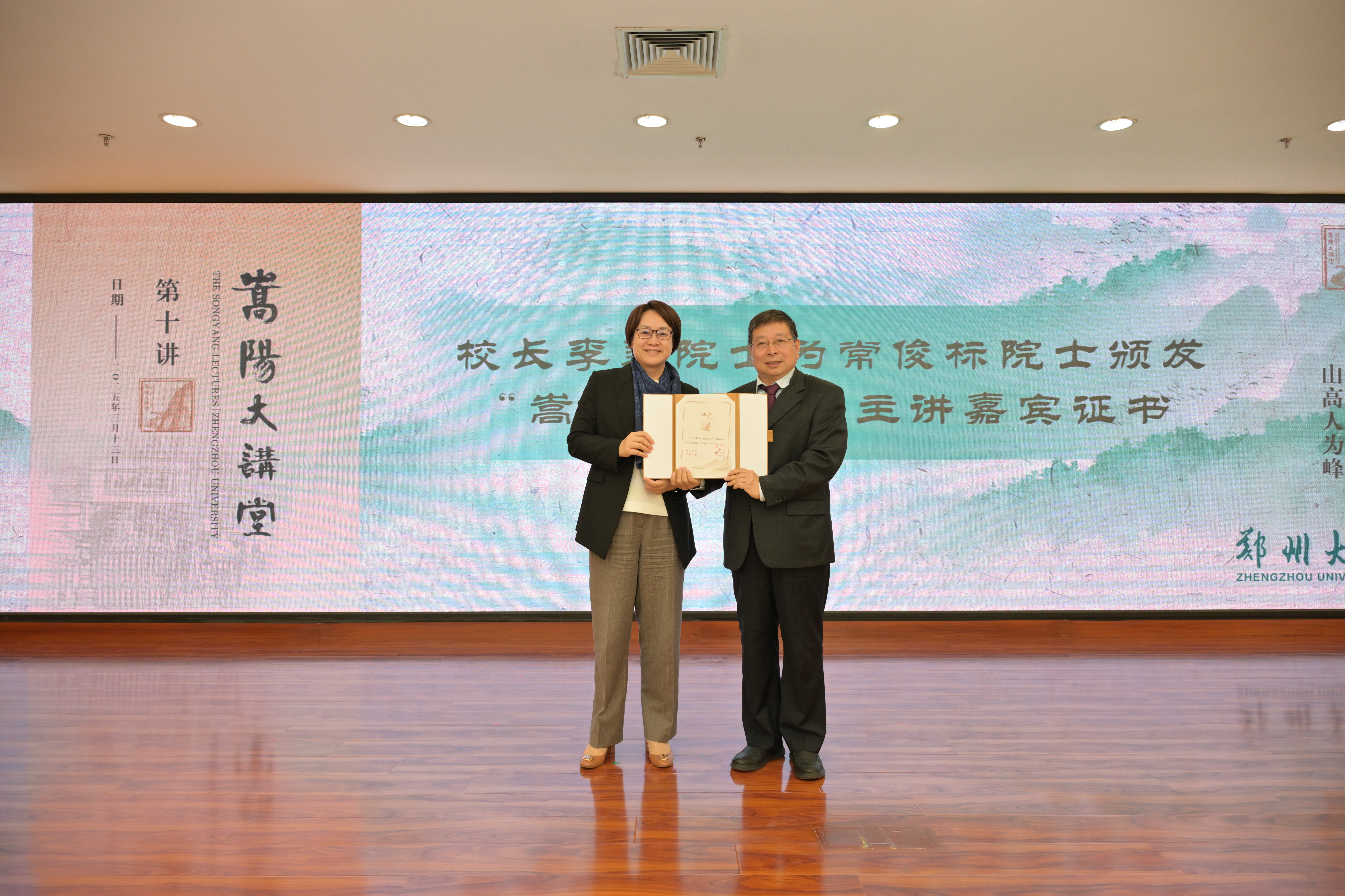 校长李蓬为常俊标院士颁发“嵩阳大讲堂”主讲嘉宾证书