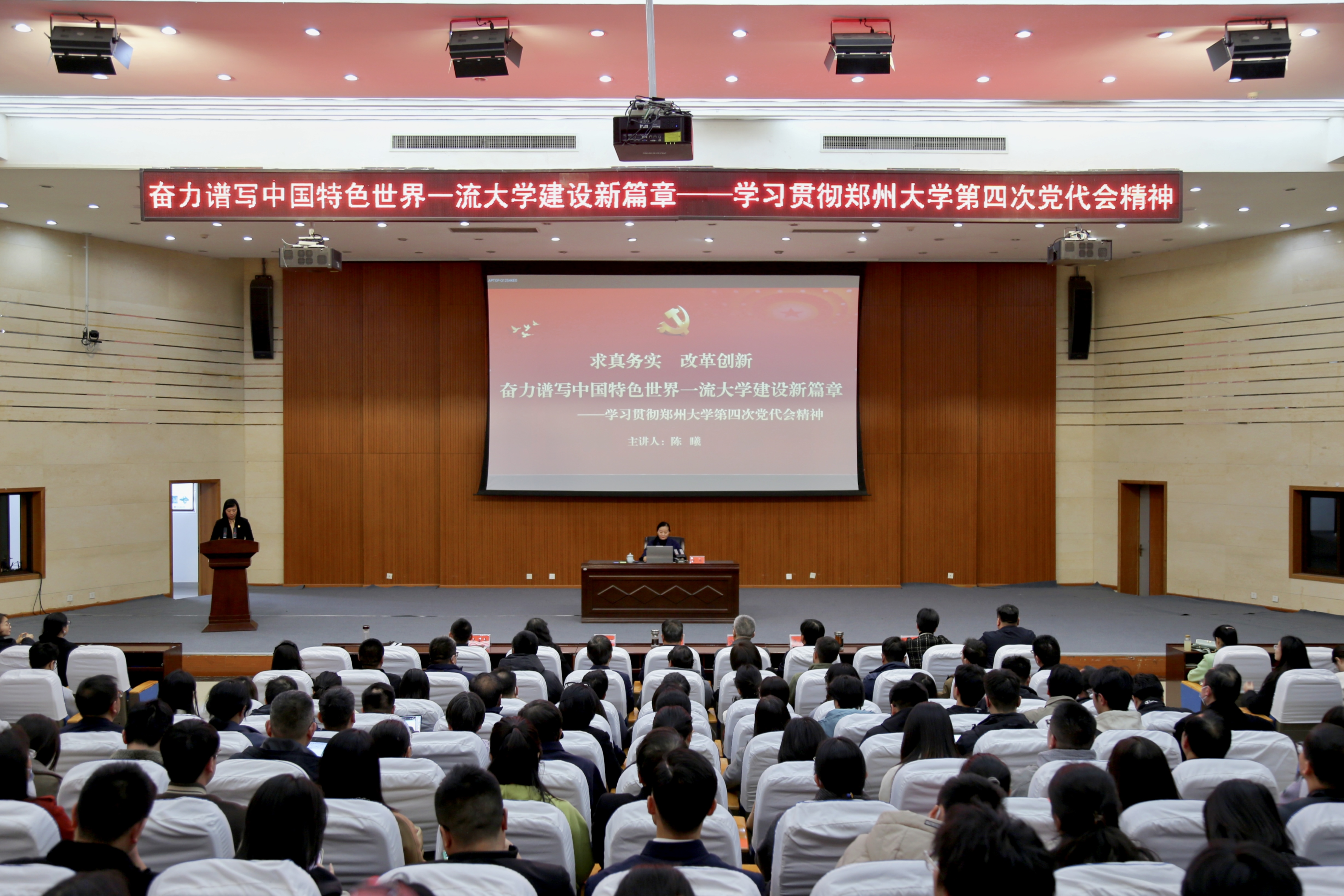 陈曦以《求真务实、改革创新,奋力谱写中国特色世界一流大学建设新篇章》为题,从合校以来主要工作和基本经验、全面把握一流大学建设新形势、奋力谱写一流大学建设新篇章、全面加强党的领导和党的建设等四个方面,深入解读了学校第四次党代会精神。她强调,此次党代会是在学校建设中国特色世界一流大学新征程召开的一次十分重要的会议,具有承前启后、继往开来的深远意义。陈曦强调,全体教职工要认真学习贯彻学校党代会精神,将思想和行动统一到党代会的决策部署上来,提高思想认识,坚定不移加强政治建设,把党的领导贯穿办学治校全过程和各领域。她指出,法学院要以学科建设为抓手,围绕检察公益诉讼、数字法学、现代公法学、涉外法治人才培养等方面推进交叉学科、新型学科建设,打造多元化、特色化的人才培养模式,奋力在高原上起高峰,造就拔尖创新人才,为学校一流大学建设增添强劲动力。