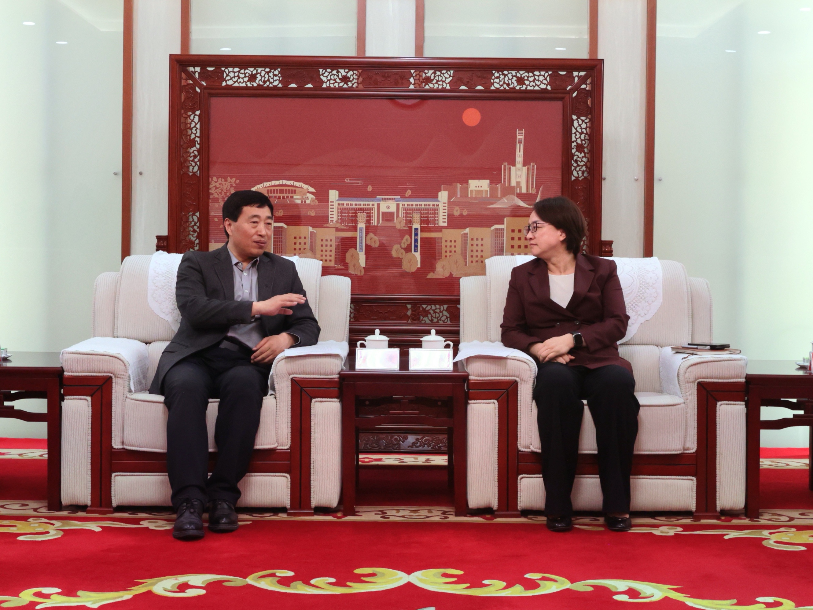 李蓬对刘培俊一行莅临指导表示欢迎,向教育部语言文字信息管理司长期以来对学校的有力支持与深切关怀表示感谢。她指出,河南是中华文明的重要发祥地,汉字是河南的文化名片。bat365在线中国官网登录入口长期深耕汉字文明领域,并在教育部语言文字信息管理司、河南省教育厅的大力支持下,成功获批建设国家语委科研基地中华汉字文明研究中心,入选“古文字与中华文明传承发展工程”协同攻关创新平台组成单位,在重大项目、科研成果、人才培养等方面获得突出进展。她表示,中华汉字文化园建设是教育部、河南省赋予bat365在线中国官网登录入口的重大使命,也是学校“十五五”乃至更长时期的重点任务,学校将汇聚校内外优质资源,努力将中华汉字文化园打造成为河南的新名片、郑州的打卡地。她强调,要以承办中国国际大学生创新大赛的契机,面向全球宣传中华汉字文化,展示中华传统文化的独特魅力和国际影响力。