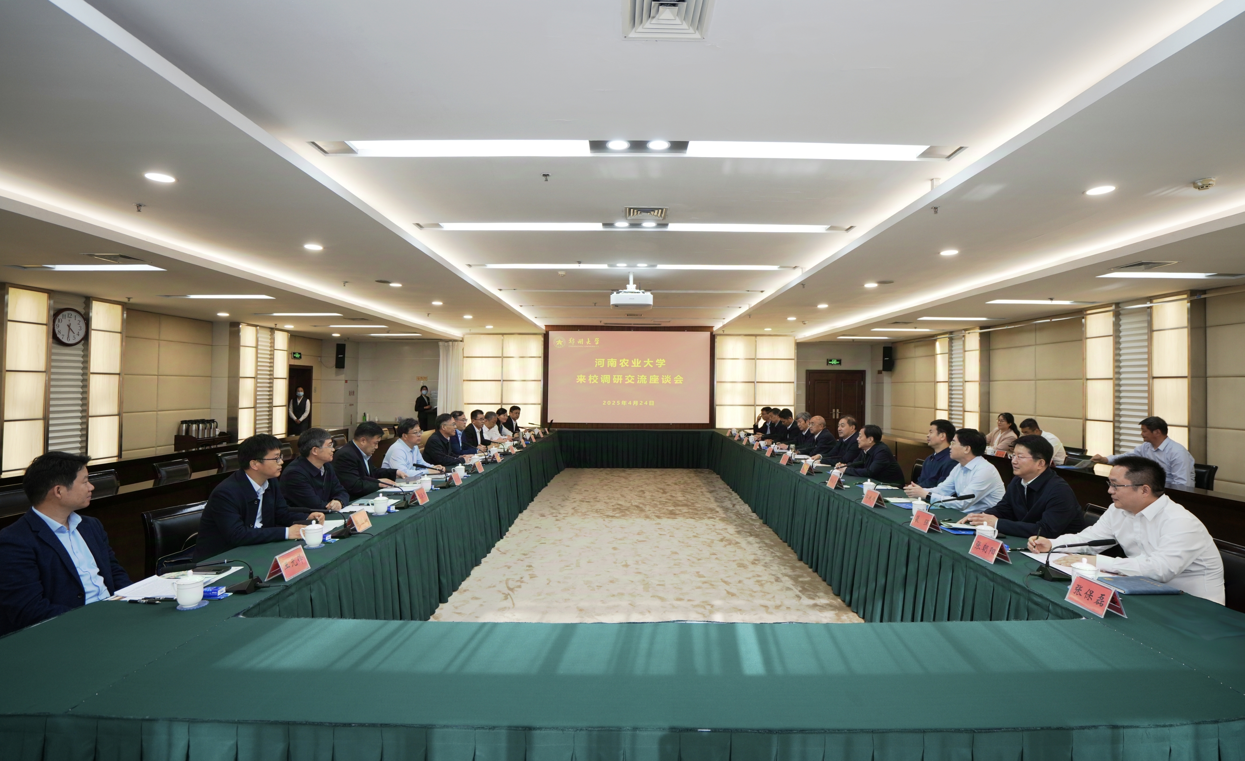 4月24日,河南农业大学党委书记岳杰勇、校长周卫院士带领校领导班子来校考察交流。全体在校校领导出席座谈会,河南农业大学相关部门及学校党政办公室、党委组织部、党委宣传部有关负责同志参加座谈。校党委书记李成伟主持会议。