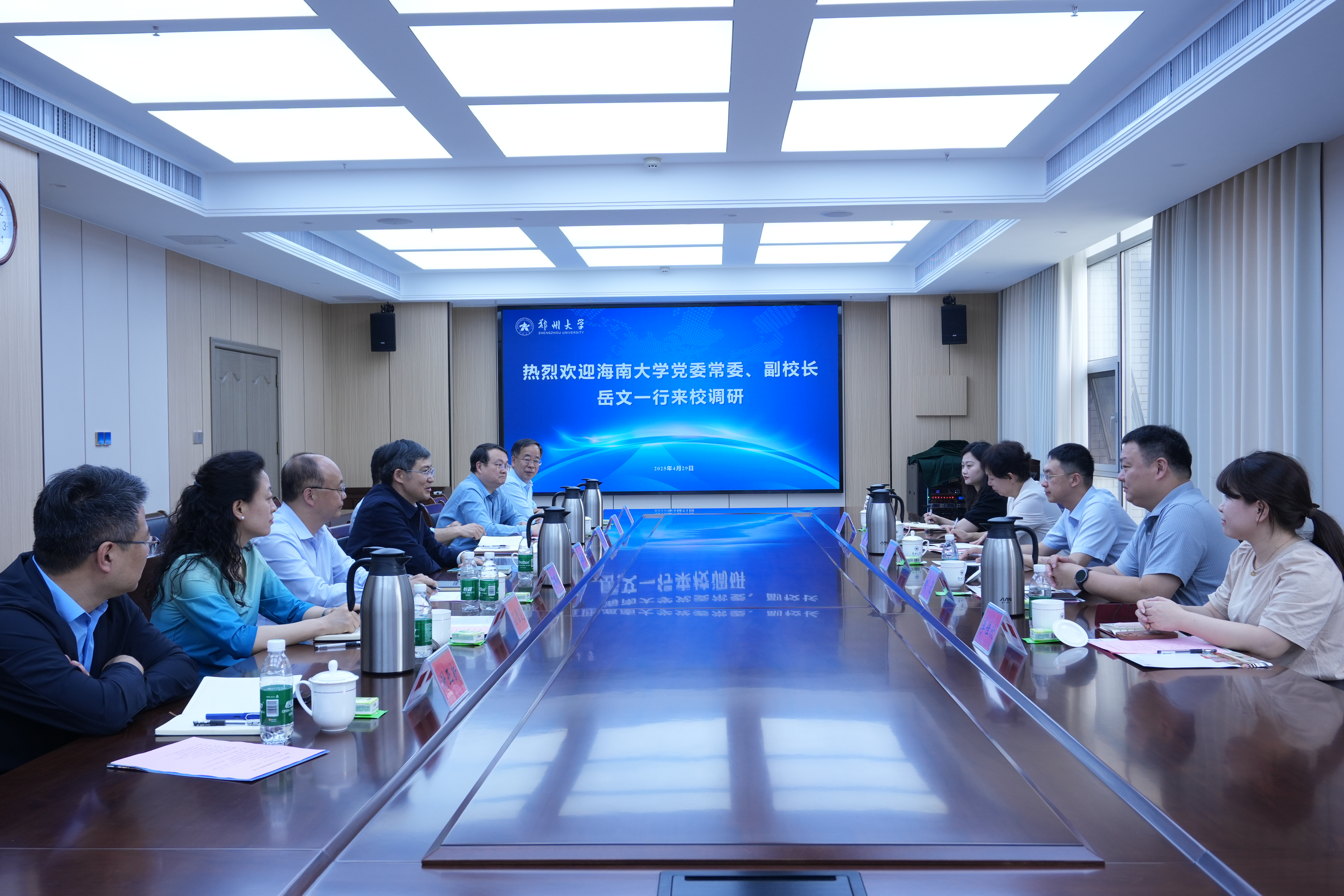 近日,海南大学党委常委、副校长岳文一行来校开展国际化办学专题调研。学校召开座谈会,校党委常委、副校长王海杰出席,教务部、国际交流与合作处(港澳台事务办公室)、国际学院、国际教育学院等单位负责同志参加座谈。