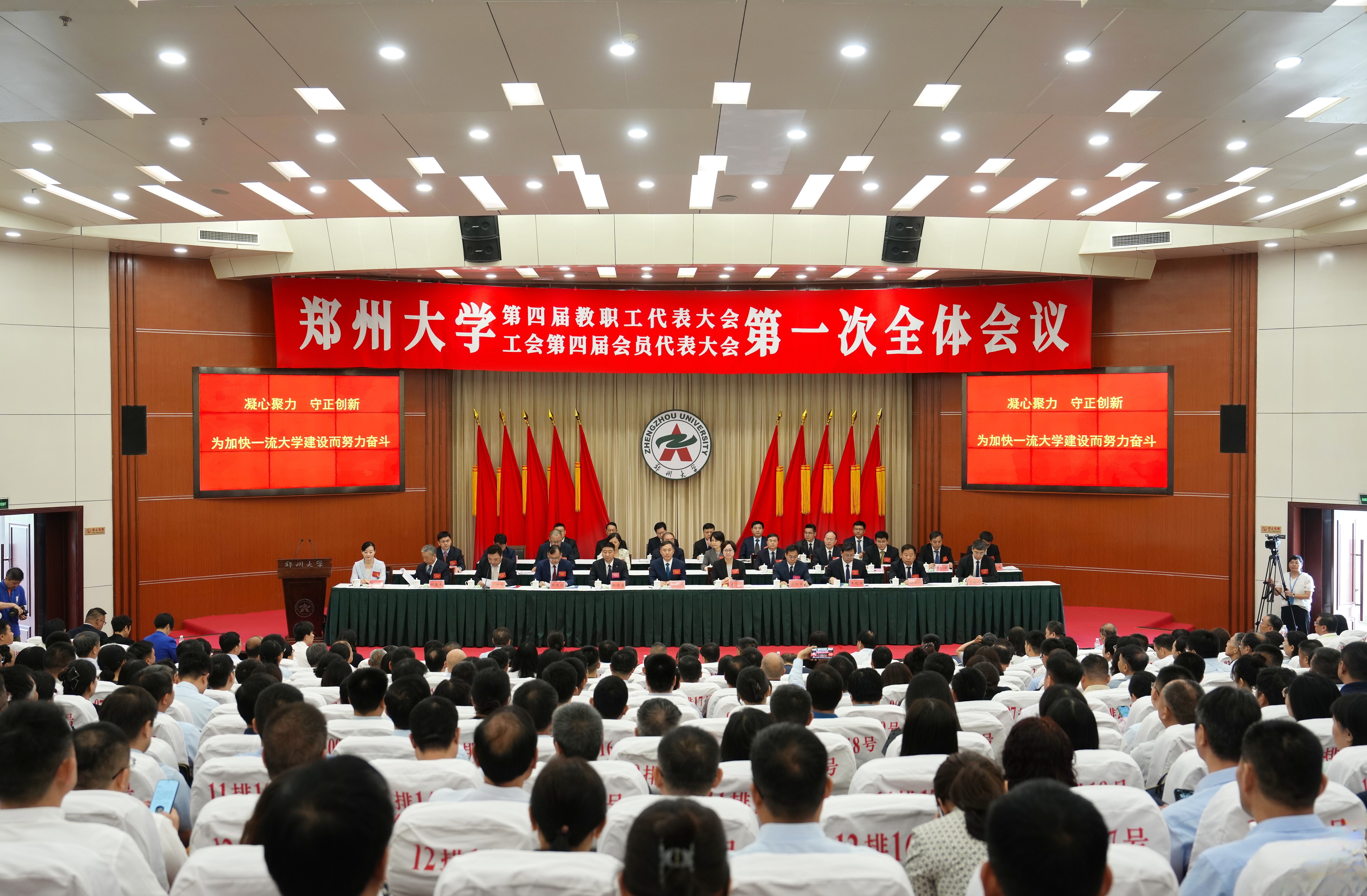 大会号召,全体教职工上下同欲、接续奋斗,开放融合谋发展、凝心聚力建一流,为早日建成中国特色世界一流大学而不懈奋斗,为谱写中原大地推进中国式现代化新篇章贡献郑大力量!