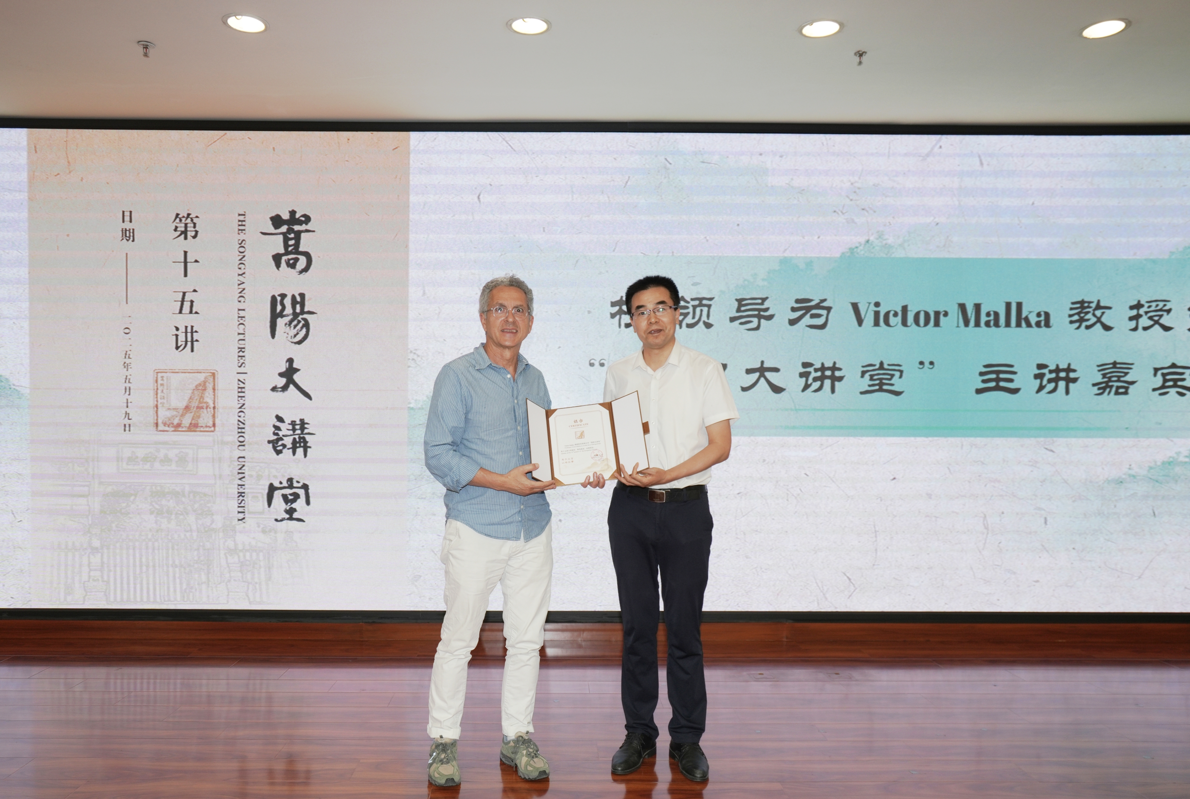 单崇新为Victor Malka颁发“嵩阳大讲堂”主讲嘉宾证书