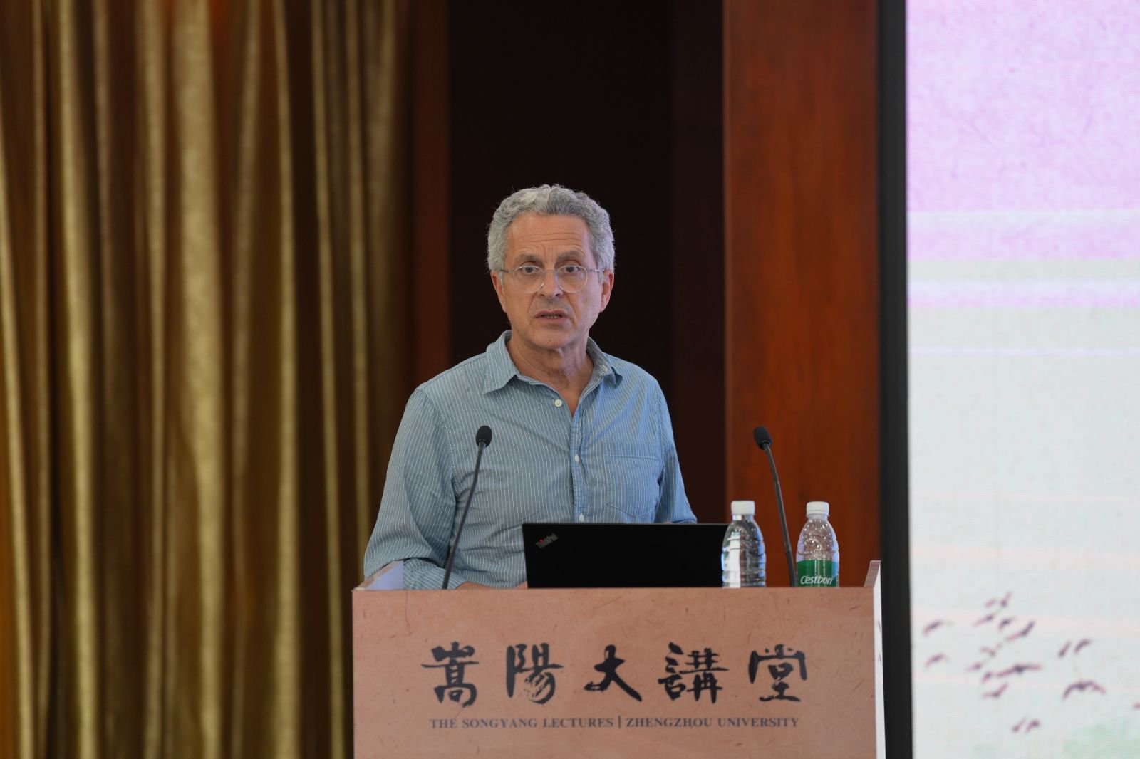 单崇新为国际激光加速领域的杰出科学家、欧洲科学院院士、罗马尼亚科学院外籍院士Victor Malka教授颁发“嵩阳大讲堂”主讲嘉宾证书。