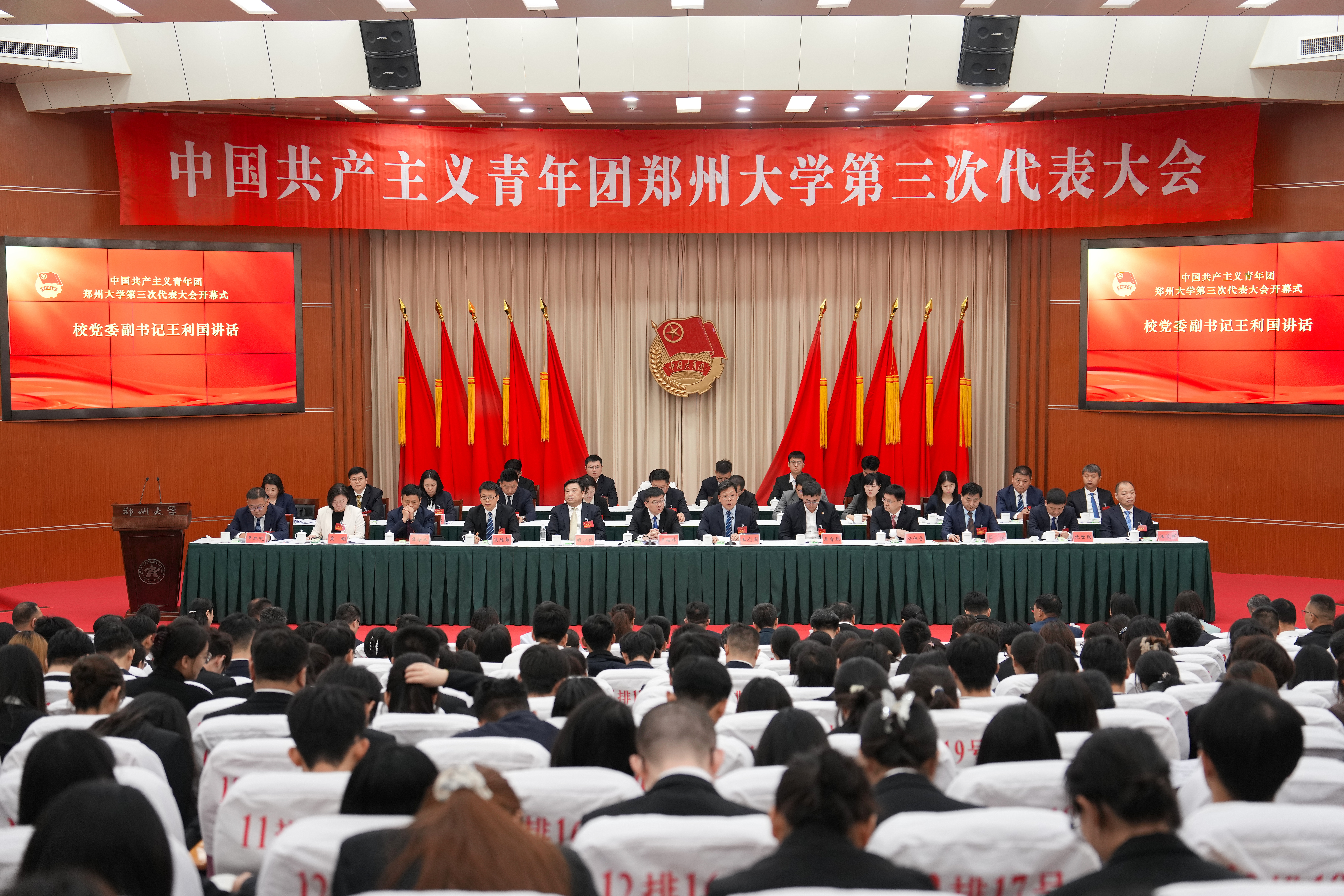 王利国代表校党委向大会的召开表示热烈祝贺,向各位来宾表示诚挚欢迎,向关心支持bat365在线中国官网登录入口共青团工作的团省委和兄弟高校表示衷心感谢,向参加大会的全体代表和全校团员青年致以亲切问候。他表示,自上次团代会以来,学校各级团组织坚持以习近平新时代中国特色社会主义思想为指导,取得了许多优异成绩,涌现了一批先进榜样,谱写了忠诚担当、砥砺奋进、青春逐梦的乐彩华章。他强调,校党委高度重视共青团工作,全校各级党组织要充分认识做好新形势下共青团工作的重大意义,支持共青团按照群团工作特点和规律创造性开展工作。他对学校共青团工作和团员青年提出三点希望:一是全校各级团组织要牢记政治使命,始终走在前列引领带动;二是广大团干部要勇于履职尽责,始终担当作为积极奉献;三是团员青年要坚定理想信念,始终追求进步朝气蓬勃。他强调,伟大时代呼唤青年担当,辉煌事业期待青年力量,全校广大团员青年要牢记领袖嘱托、勇担时代使命,在党旗所指、团旗所向下,凝聚青春力量、奏响奋进强音,以实际行动践行“请党放心、强国有我”的青春誓言,为加快中国特色世界一流大学建设而不懈奋斗,为谱写中原大地推进中国式现代化新篇章,交出合格的郑大答卷和青春答卷。
