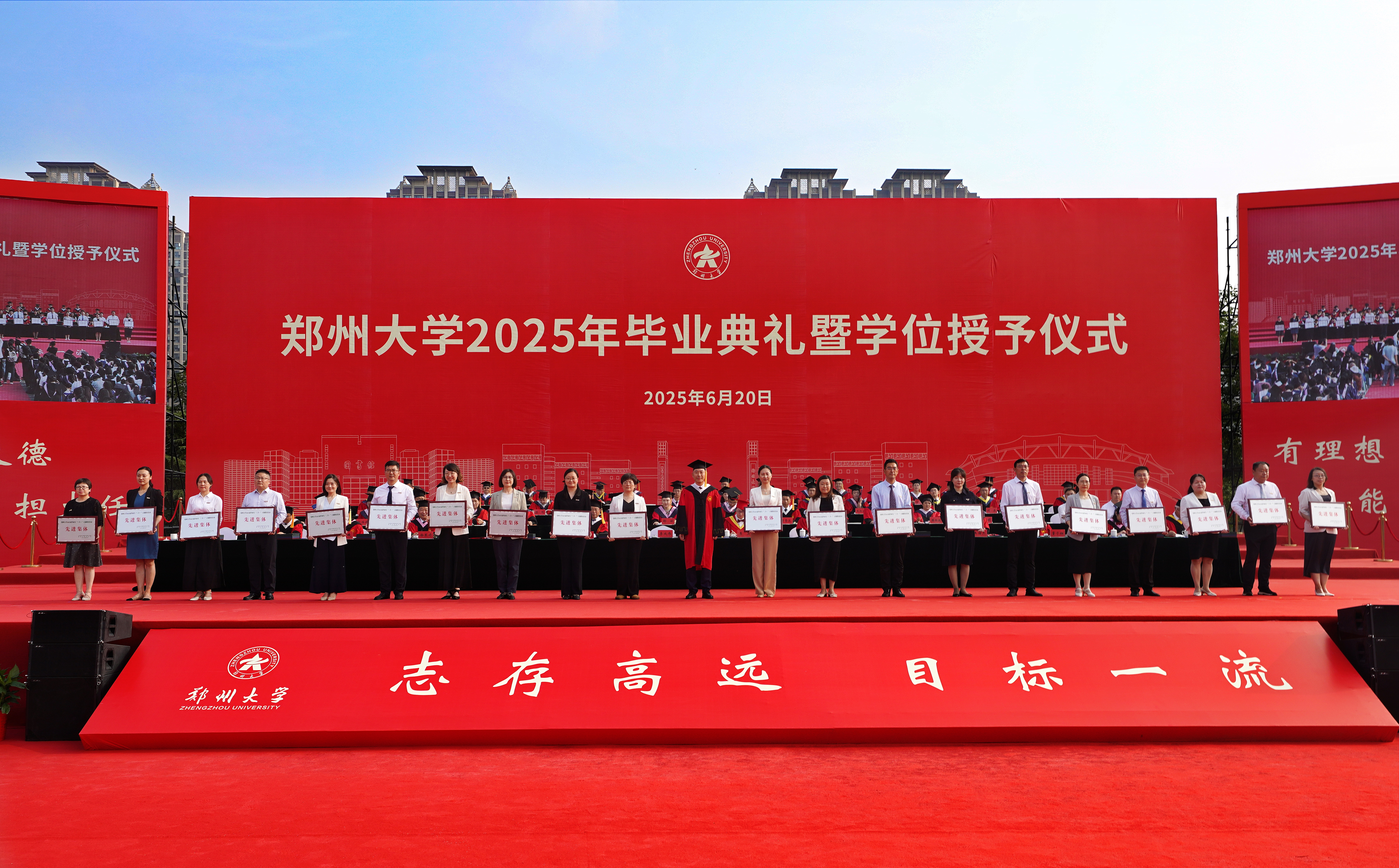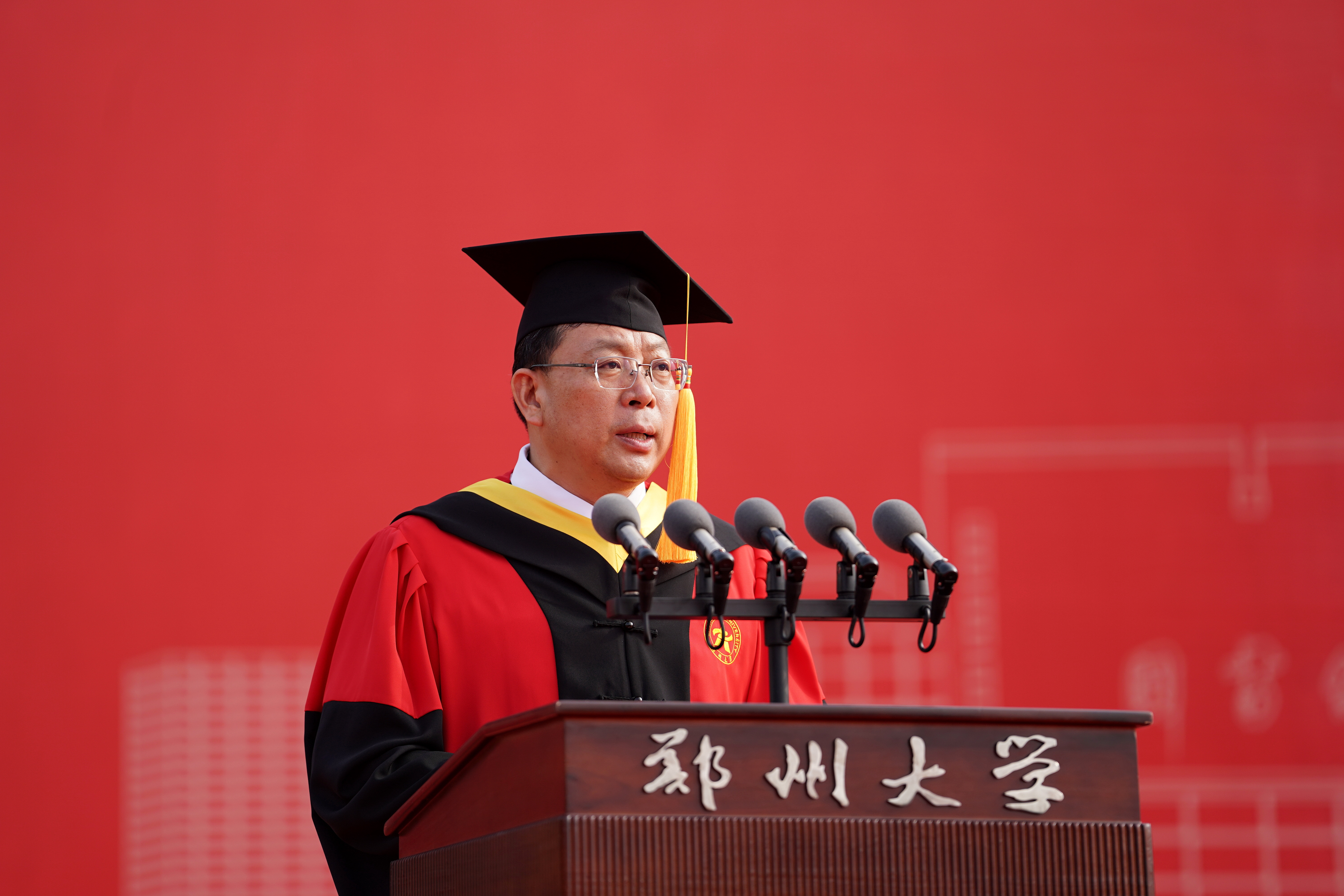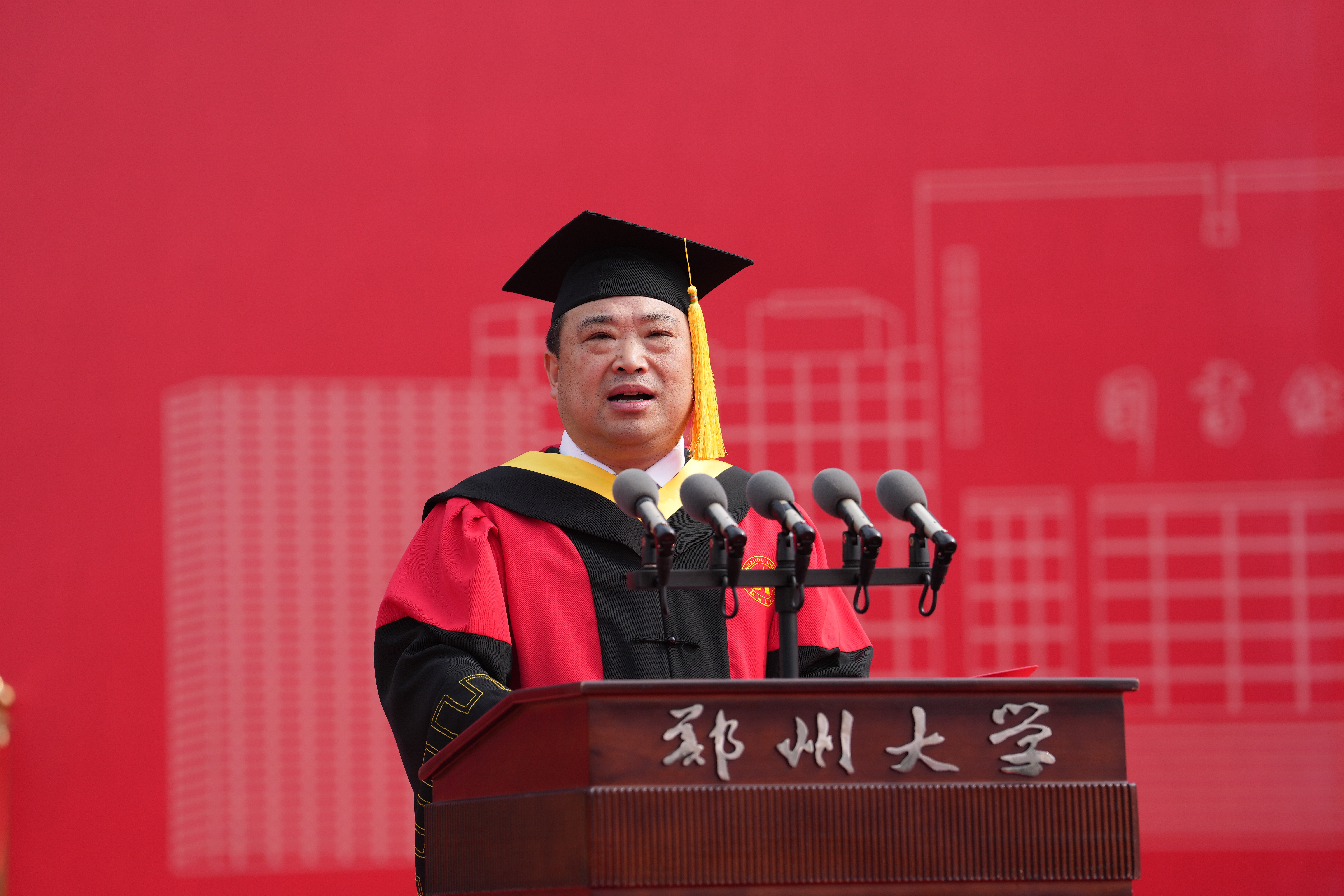 校长李蓬院士以《“渡”好人生的船》为题发表讲话,从教育视角阐释大学之“渡”。她指出,大学之“渡”的核心在于立德树人,旨在培育全面发展、担当民族复兴大任的时代新人。“渡”不仅是校园景观,更是郑大人的精神坐标,滋养着一代代学子。她强调,“渡”承载着“有教无类”“人人皆可成才”的价值观与“让每个学生更优秀”的办学理念。郑大通过系统培养,致力于使学生价值观更完善、身体更健康、心理更成熟、学业更进步、思维更创新、能力更突出,成为服务乃至引领社会进步的优秀人才。这艘“梦想之舟”已助力百万学子扬帆启航,奔赴四方。她表示,“渡”象征着迎风破浪、奋力拼搏,代表着持续向前、不断抵达新起点、开启新征程,既彰显了学校负重前行、强化内涵、勇攀高峰的拼搏意志,也见证了每位学子在郑大“渡”过美好时光、实现自我蜕变的成长足迹。她进一步强调,“渡”深刻蕴含着郑大人的精神内核:于己是不断超越的蜕变,于人是倾情相助的奉献,于社会是勇担使命的信念。郑大人以超越的勇气、奉献的光芒、接力的信念,赋予“渡”生命厚度与人文温度,将其镌刻为灵魂深处的精神密码。最后,她寄语毕业生:面对未来航程的风雨挑战,要让“渡”的精神照亮前路。她希望同学们锚定人生航向,锻造破浪勇气,成就并肩旅程——在黑夜中做自己的导航者,在风暴中做他人的庇护者,在时代洪流中做搏浪的奋楫者,书写属于自己的生命华彩。