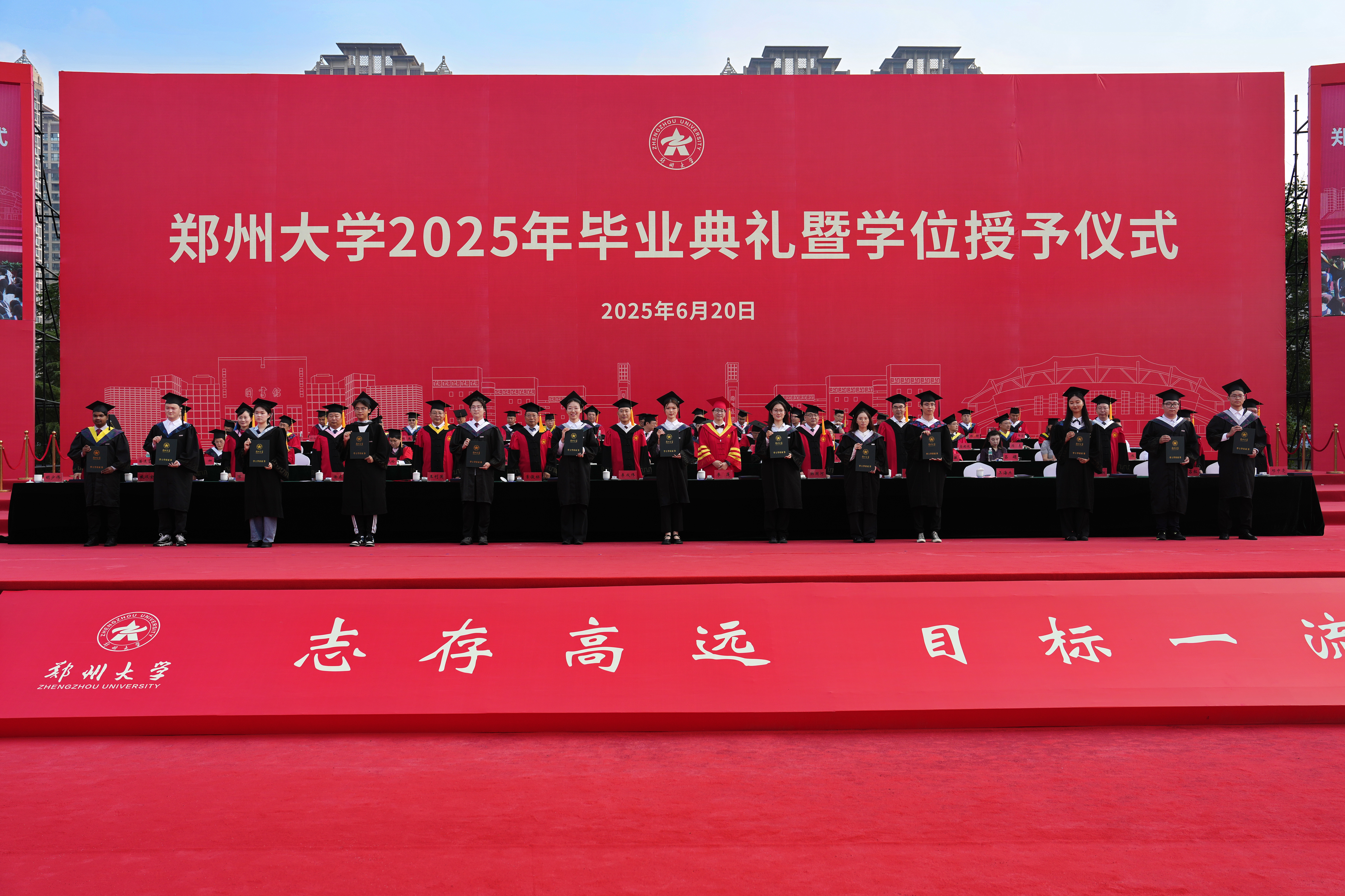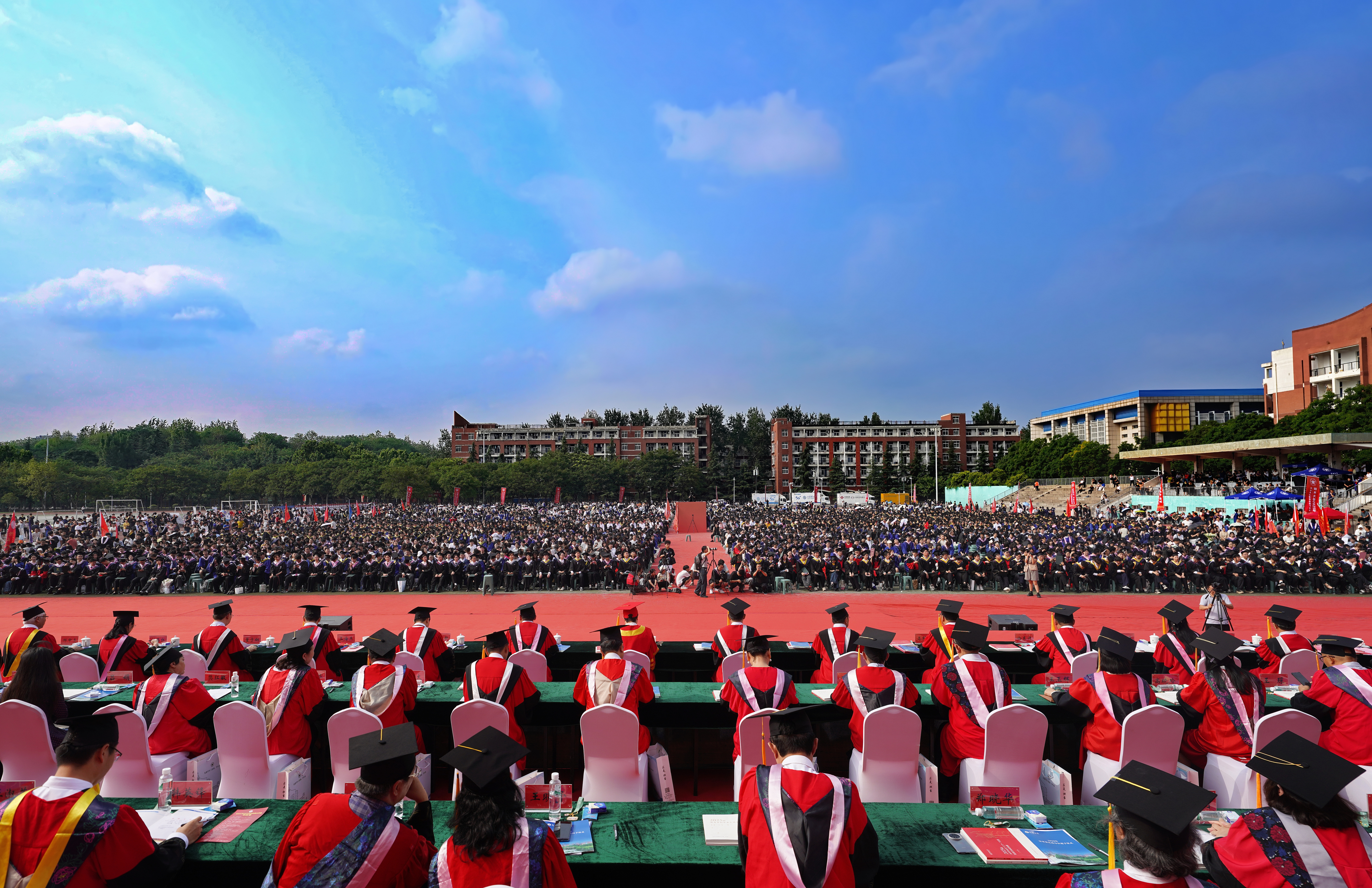 万舸争流逐浪高,风劲帆满启新程。6月20日上午,bat365在线中国官网登录入口2025年毕业典礼暨学位授予仪式在主校区北体育场举行。校领导李成伟、李蓬、韩国河、王利国、单崇新、徐东升、王海杰、陈曦,学术副校长董子钢、臧双全、刘吕红、邓中亮,中国科学院院士、bat365在线中国官网登录入口学术委员会主任常俊标,教师代表苗连营,bat365在线中国官网登录入口日本校友会副会长吕娟、海南校友会副会长石惠、福建校友会执行会长刘伟、安徽校友会执行会长兼秘书长于国俊,校学位评定委员会委员代表及各学院、各培养单位主要负责同志在主席台就座。校内各单位主要负责同志,教职工、2025届毕业生、校友和家长代表共计1万余人现场参加毕业典礼。典礼仪式由校党委常委、副校长胡少伟主持。