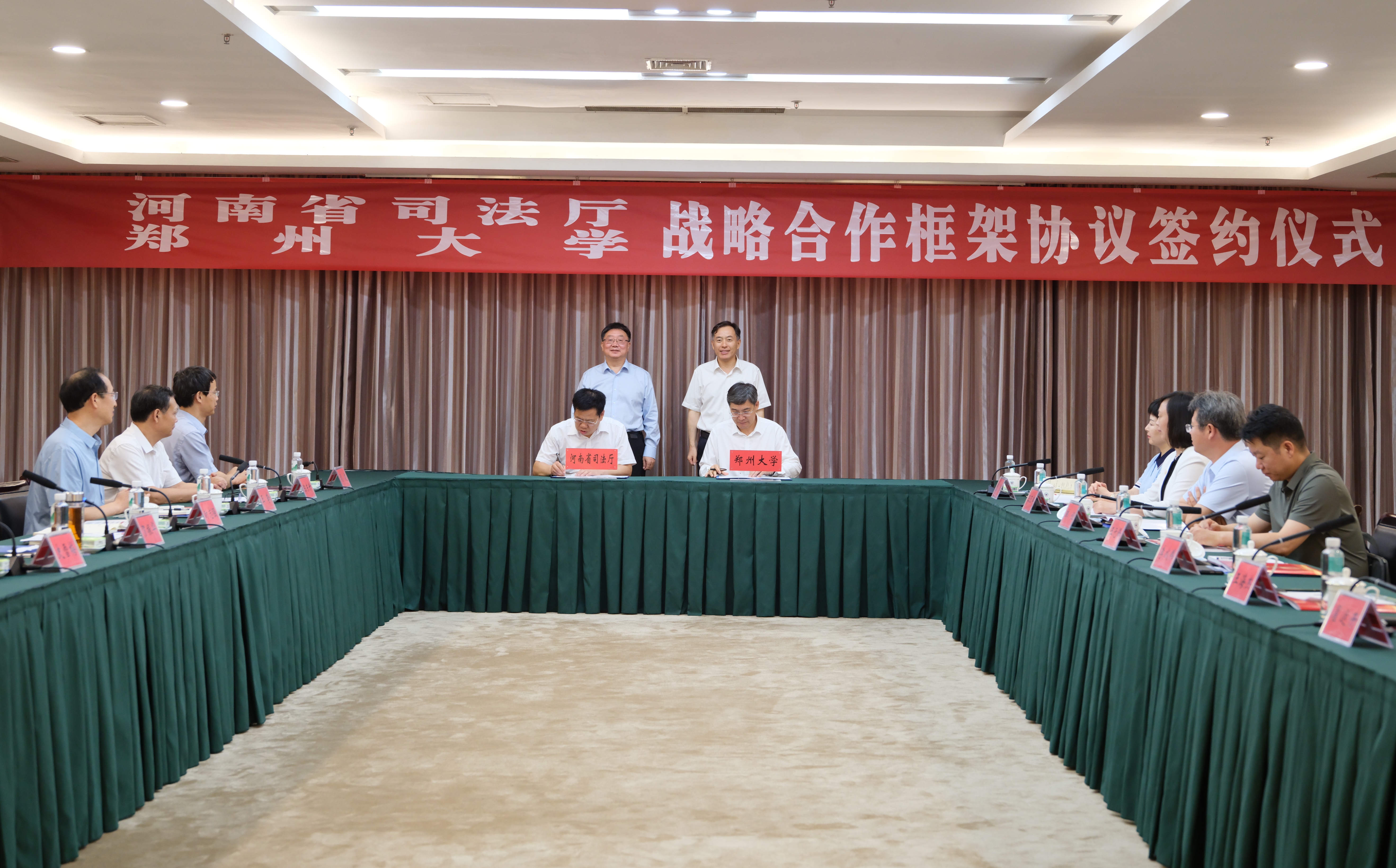 6月25日,bat365在线中国官网登录入口与河南省司法厅举行战略合作框架协议签约仪式。河南省司法厅党委书记、厅长,省监狱管理局第一政委贺振华;河南省司法厅副厅长时志强;bat365在线中国官网登录入口党委书记李成伟,党委常委、副校长王海杰出席,双方相关部门负责同志参加仪式。仪式由bat365在线中国官网登录入口法学院负责同志主持。