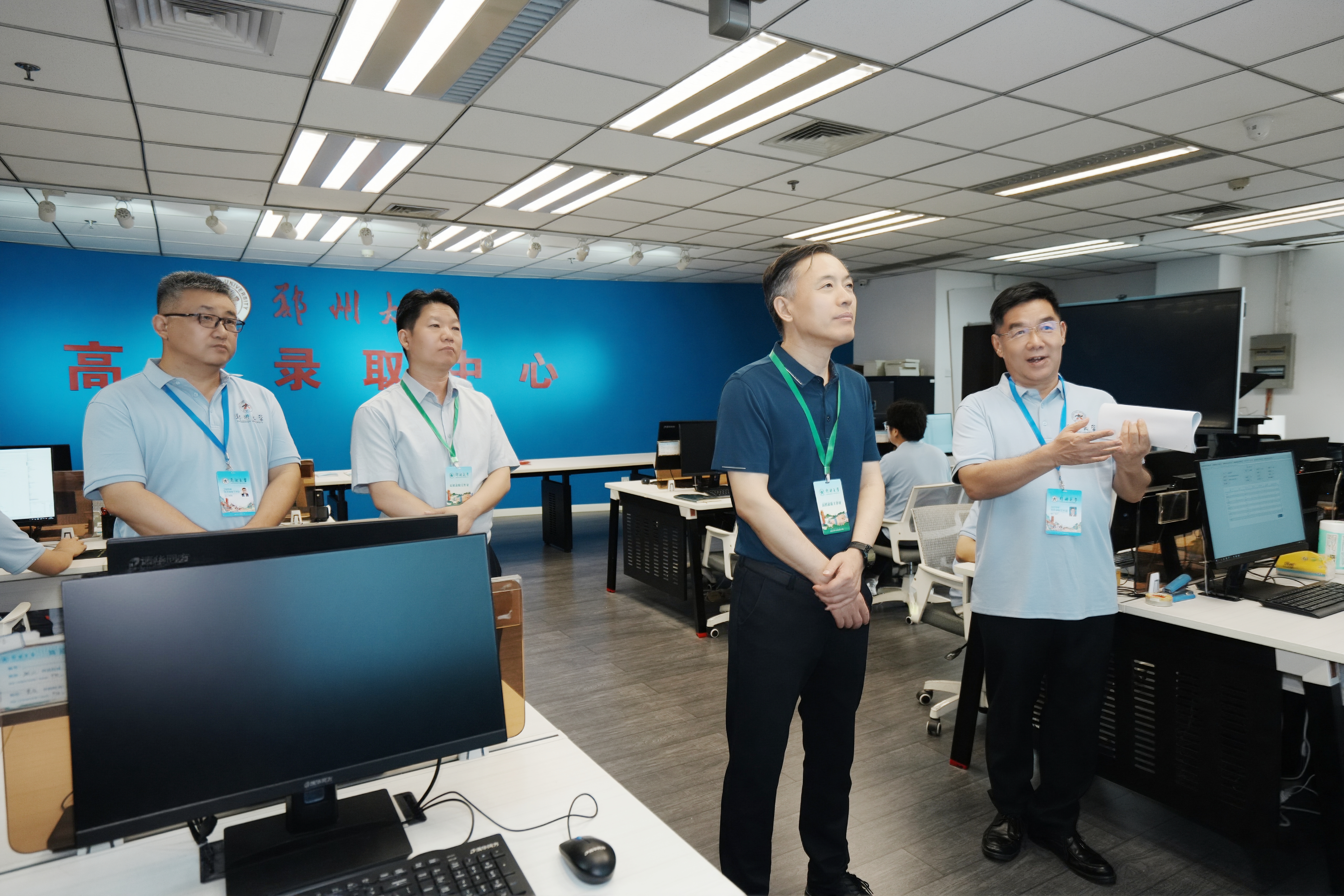 在高招录取中心,李成伟实地查看了招生录取工作流程与进度,了解了河南新高考改革学校本科招生工作的新形势、新变化,听取了本科招生办公室负责同志工作汇报,对招生录取工作人员的辛勤付出和取得的阶段性成效给予充分肯定。