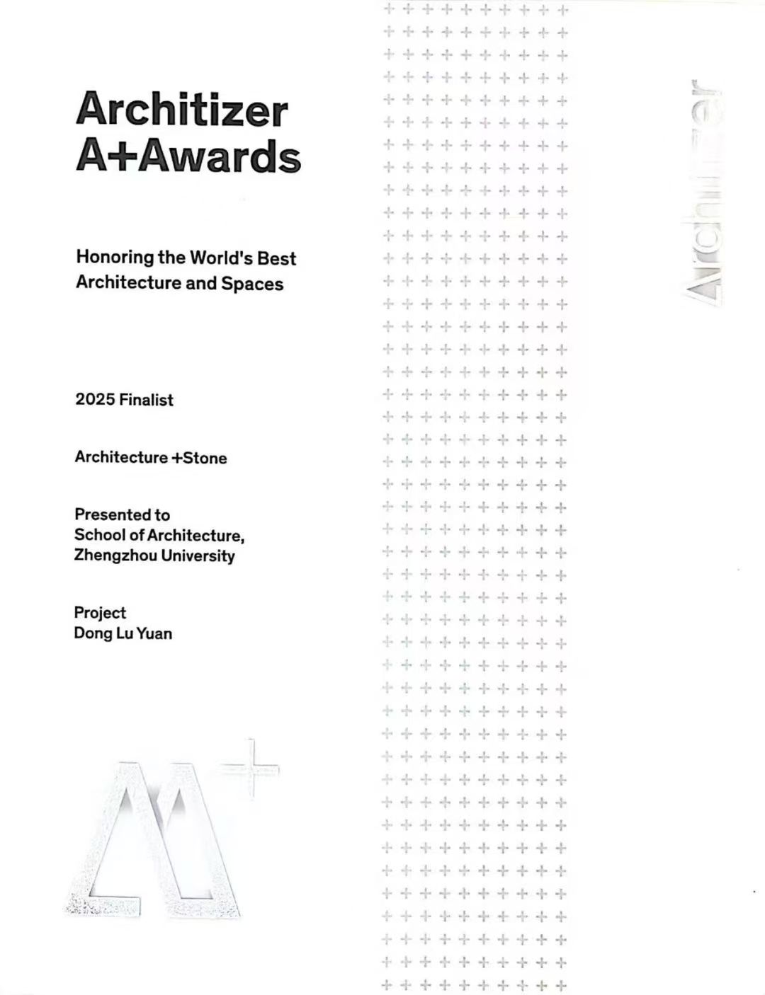 美国Architizer A+奖是由全球最大的建筑平台Architizer主办,是全球建筑与设计领域最具影响力和权威性的奖项之一;该奖项旨在表彰全球最优秀的建筑项目、设计师和产品,其评审团由国际顶尖建筑师、设计师及评论家组成。奖项评选极为严格,每个类别从全球数百个优秀项目中仅遴选出5强进入决赛,最终决出1名Winner和4名Finalist。往届知名获奖项目如荷兰MVRDV的“山谷”垂直社区、日本隈研吾的“竹谧”住宅、中国台湾库哈斯的“台北表演艺术中心”、挪威Snøhetta的“Under”水下餐厅、中国MAD建筑事务所的“哈尔滨大剧院”等,均在建筑界享有盛誉。