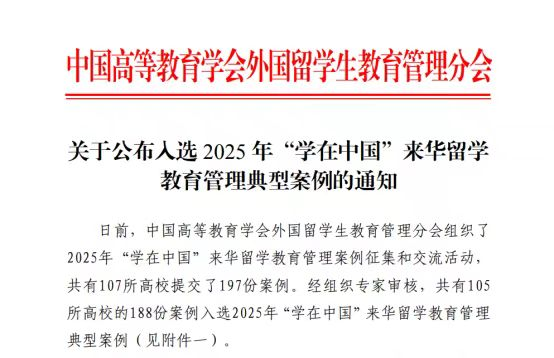 近日,中国高等教育学会外国留学生教育管理分会公布了2025年“学在中国”来华留学教育管理典型案例评选结果。bat365在线中国官网登录入口国际教育学院申报的《全球化背景下中国国情教育课程<走进中国>的创新研究与探索》案例,凭借其显著的教学创新成果,成功入选“教学创新类”典型案例。