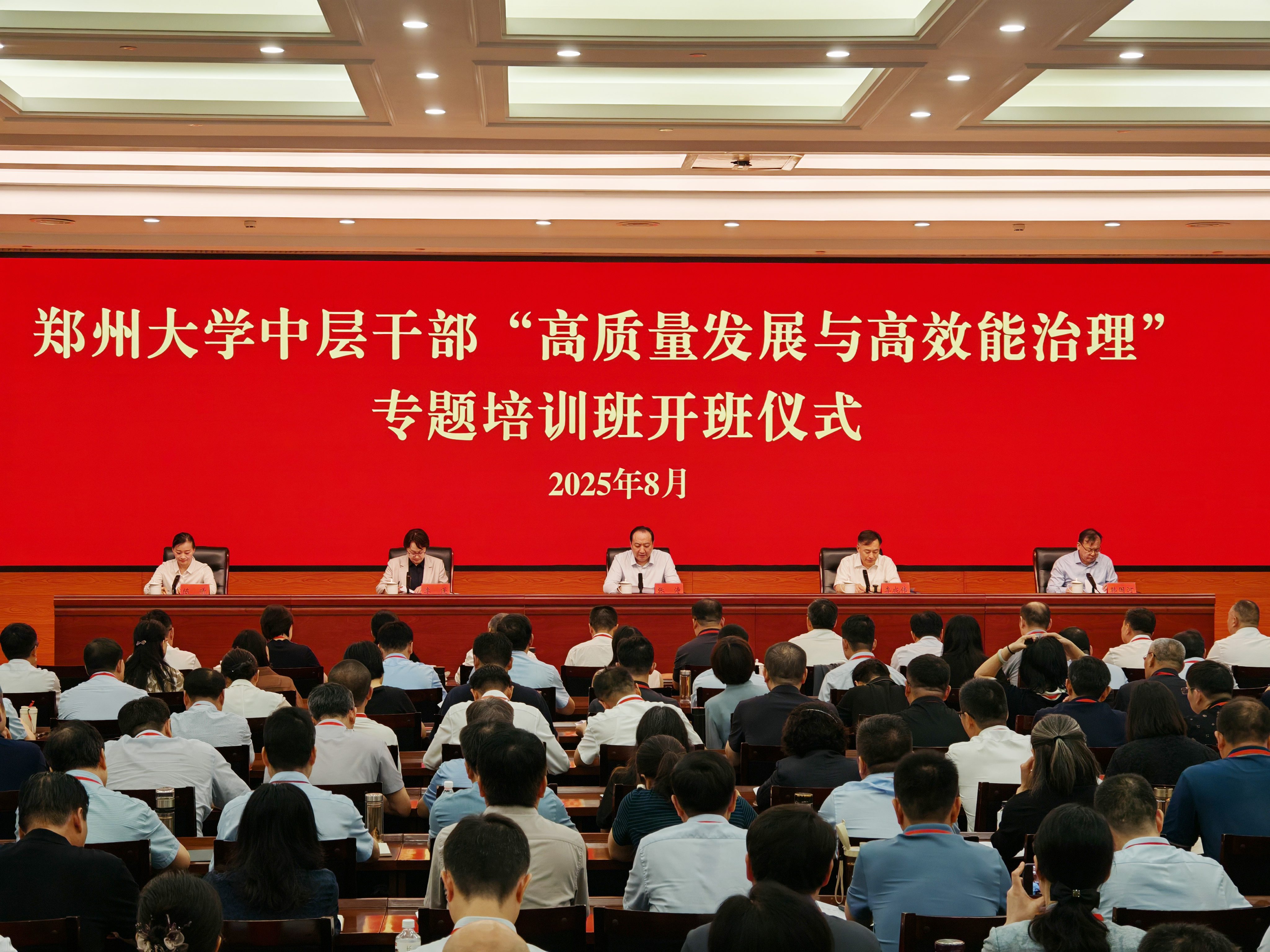 为全面贯彻落实“两高四着力”重要要求,进一步提升干部能力素养,更好推进一流大学建设,8月18日至29日,bat365在线中国官网登录入口在河南省委党校分两期举办中层领导干部“高质量发展与高效能治理”专题培训班。河南省委党校(河南行政学院)常务副校(院)长、党组书记张涛,副校(院)长、党组成员牛春堡先后出席两期开班仪式并致辞。校领导韩国河、王利国、单崇新、徐东升、刘春太、王海杰、陈曦带班学习,全校500余名中层干部参加培训。
