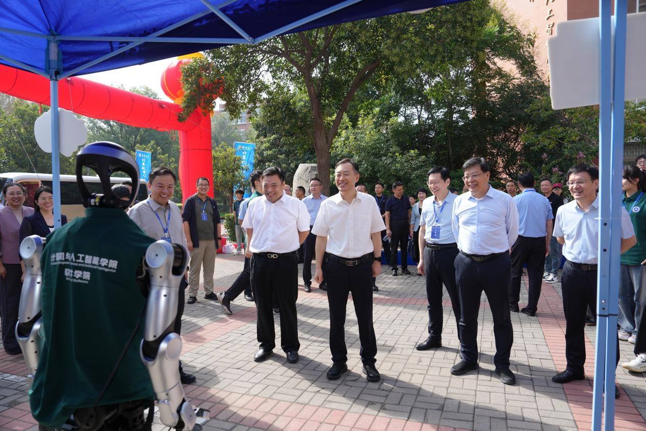 学科体验,点燃热情。数学与统计学院为新生准备了寓意深远的“数学家行囊”,既是一份独特的入学礼物,也是一封写给数学人的深情“情书”。电气与信息工程学院陈列学生获得的国家级竞赛奖项,举办实验室开放日,展示科技创新硬核实力。计算机与人工智能学院展出“小郑一号”人形机器人、超大无人机等智能科技,并安排智能巡逻机器人为新生运送行李、安防机器人承担迎新点巡查任务。水利与交通学院组织“水利时空长廊”穿越之旅与水利精神宣誓仪式。生命科学学院展出学生野外实习制作的动植物标本,展现实践教学成果与学科独特魅力。护理与健康学院设置“我与南丁格尔合影”打卡和急救培训,强化职业认同感与使命感。各学院将专业元素融入迎新场景,帮助新生建立专业认知,激发学习兴趣。