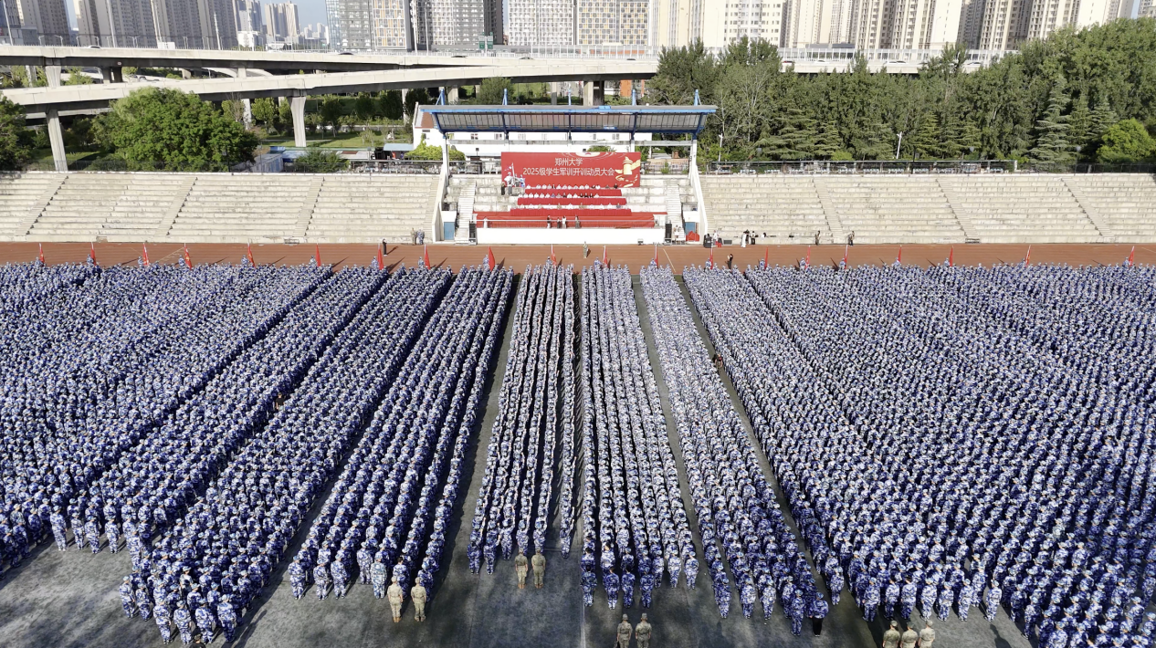 在庄严的国歌声中,动员大会正式拉开帷幕。红旗迎风招展,万余名新生戎装整肃、身姿挺拔,坚定的目光展现出郑大学子砺剑铸魂、强健体魄的坚定信念。军训教官进行精彩的军事技能表演,口号铿锵、动作凌厉,招招式式虎虎生威,尽显过硬本领与必胜信念,引得全场掌声雷动,瞬间点燃同学们的参训热情。
