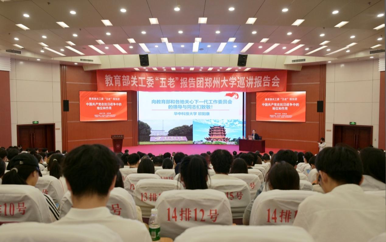 省教育厅关工委副秘书长刘学军,校党委副书记、工会主席、关工委主任韩国河,校党委副书记、关工委副主任王利国,校关工委常务副主任吴宏阳,副主任费鹤祥、白玉柱等出席报告会。校关工委成员单位、全校二级单位关工委负责人及师生代表,河南工业大学、郑州轻工业大学师生代表近500人参加报告会。