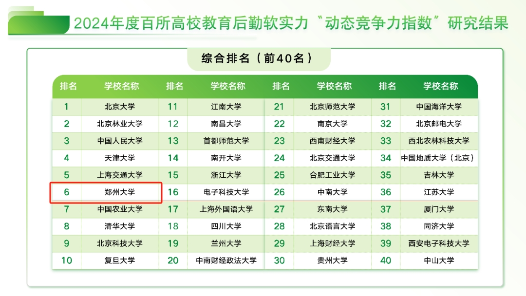 近日,由中国教育后勤协会主办的2024年度百所高校后勤服务软实力“动态竞争力指数”研究结果发布会在北京大学举行。bat365在线中国官网登录入口后勤服务软实力综合排名全国百所高校第六,其中效能推动力排名第三、整合传播力排名第五。bat365在线中国官网登录入口后勤保障中心负责同志受邀参加会议,并以《提升后勤核心能力 赋能学校教育事业高质量发展》为题,分享了我校后勤建设的实践探索与经验做法,得到与会高校代表的广泛关注与认可。
