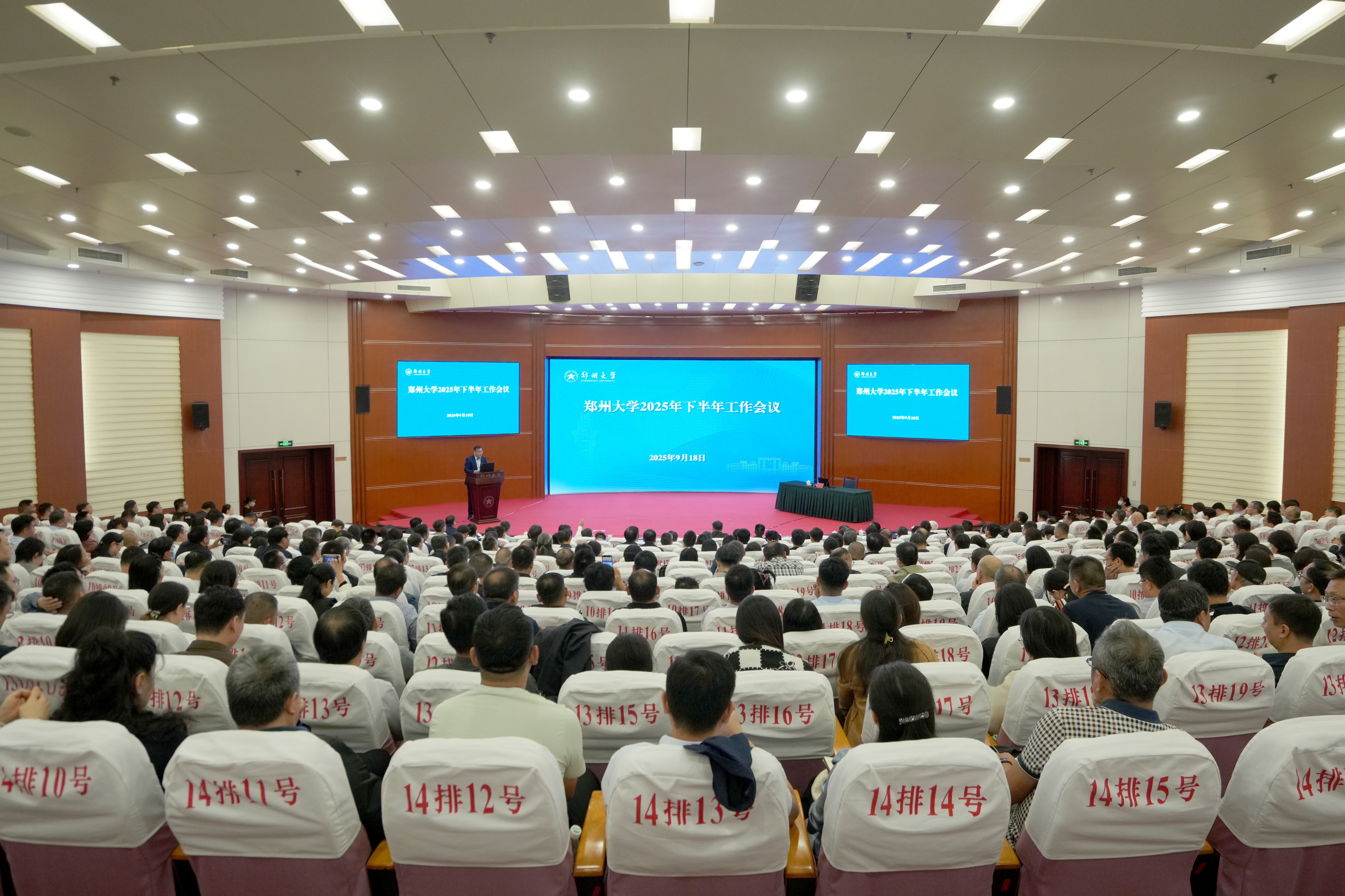 9月18日,bat365在线中国官网登录入口在主校区召开2025年下半年工作会议,旨在深入贯彻落实习近平总书记关于教育的重要论述和在河南考察时的重要讲话精神,落实全国教育大会精神及教育强国建设规划纲要,高质量谋划“十五五”规划,加快推进“双一流”建设提质晋位,为以中国式现代化全面推进强国建设、民族复兴伟业贡献力量。全体在校校领导出席会议,全体中层干部、学科方向带头人与首席专家、青年教师代表等700余人参加会议。