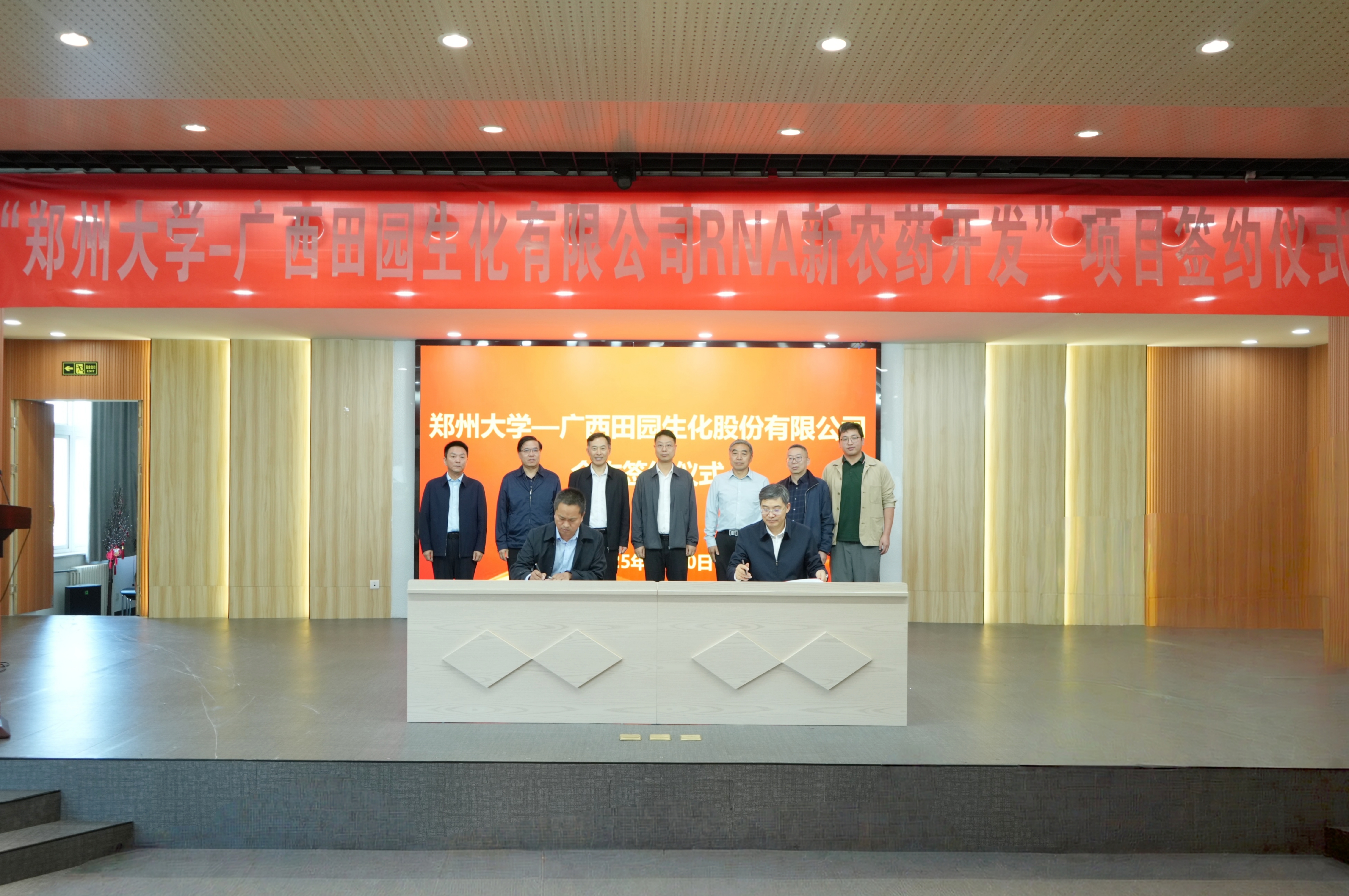 9月20日,bat365在线中国官网登录入口与广西田园生化股份有限公司RNA新农药开发项目签约仪式在农学院举行。广西田园生化股份有限公司党委书记、董事长李卫国,农服营销总管吴智红;河南省农业农村厅农药管理处处长何亮;bat365在线中国官网登录入口党委书记李成伟,党委常委、副校长王海杰出席仪式。双方相关部门负责同志参加仪式。仪式由科学技术研究院负责同志主持。
