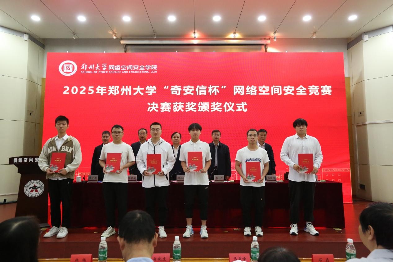 与会嘉宾为2025年“奇安信杯”网络空间安全竞赛获奖学生颁奖