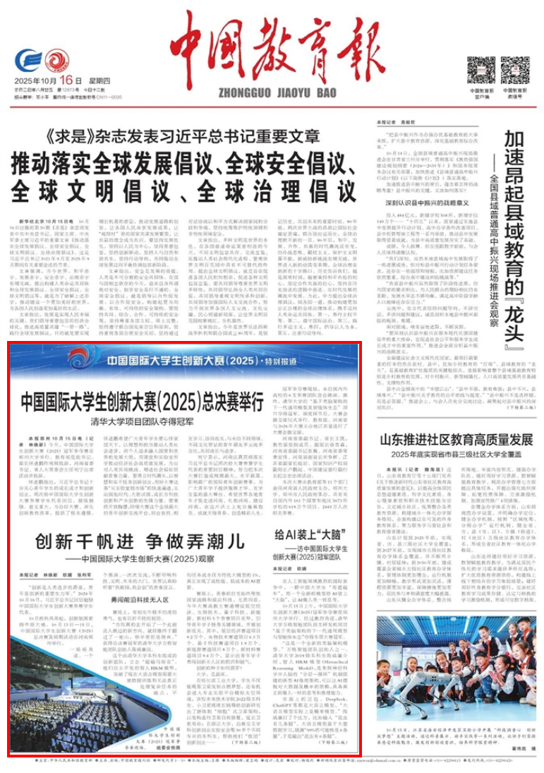 《中国教育报》头版特别报道中国国际大学生创新大赛(2025)