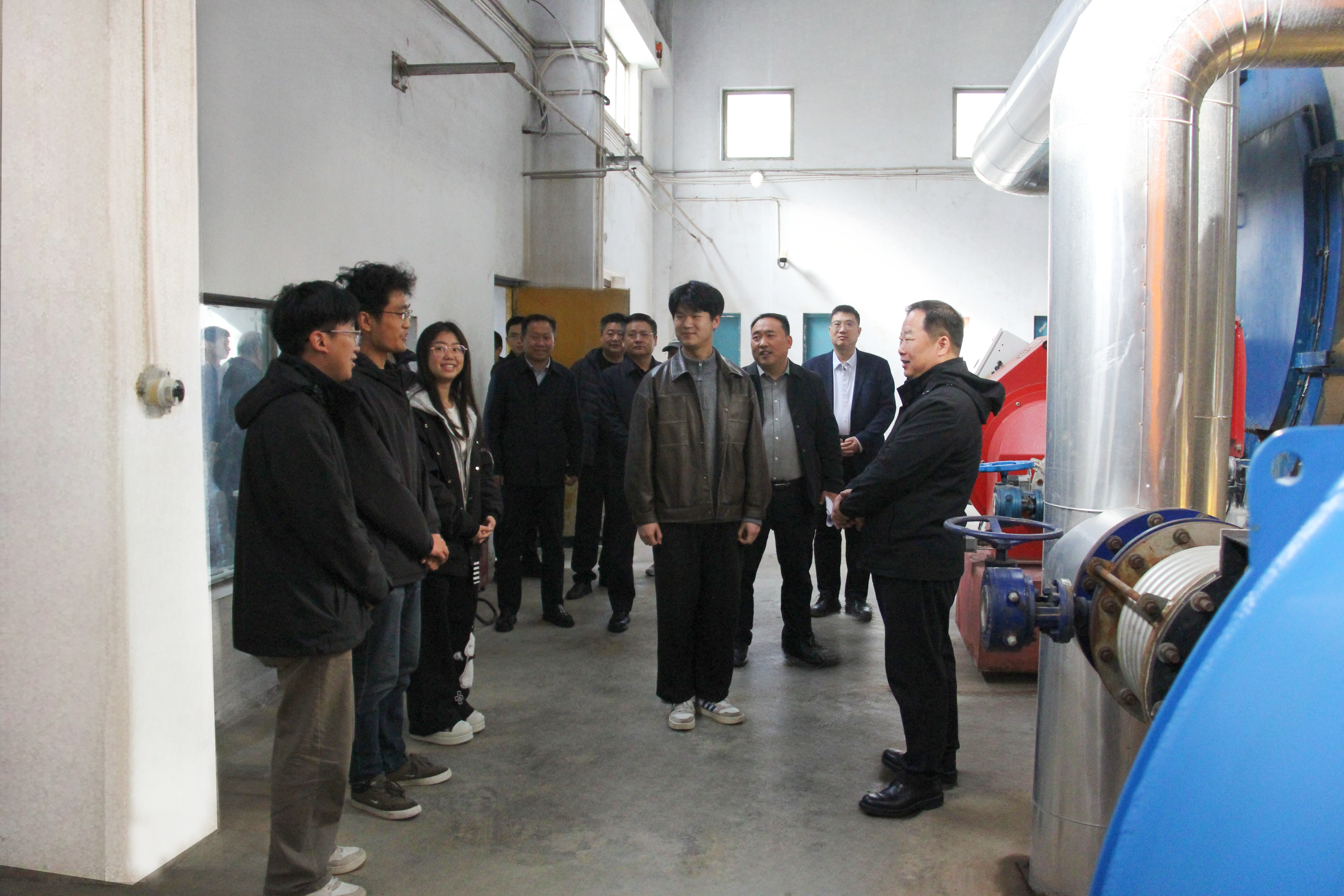 在主校区一期供暖锅炉房,徐东升听取供暖前期筹备工作汇报,详细了解安全管理、设备运行以及职工生活保障等情况,对后勤保障部前期筹备工作给予充分肯定,向坚守岗位、辛勤付出的后勤职工表示感谢。徐东升与学生代表亲切交流,细致了解往年供暖体验,倾听大家对后勤保障工作的意见建议。他强调,冬季供暖是关乎全校师生切身利益的“民生工程”,更是检验我校后勤保障能力的“民心工程”,必须以周全的准备、严格的标准、坚实的安全防线,全力以赴保障供暖系统稳定、持续、高效运行。随后,徐东升与学生代表共同按下点火按钮,主校区及另外三个老校区同步启炉,标志着我校今冬供暖工作全面启动。