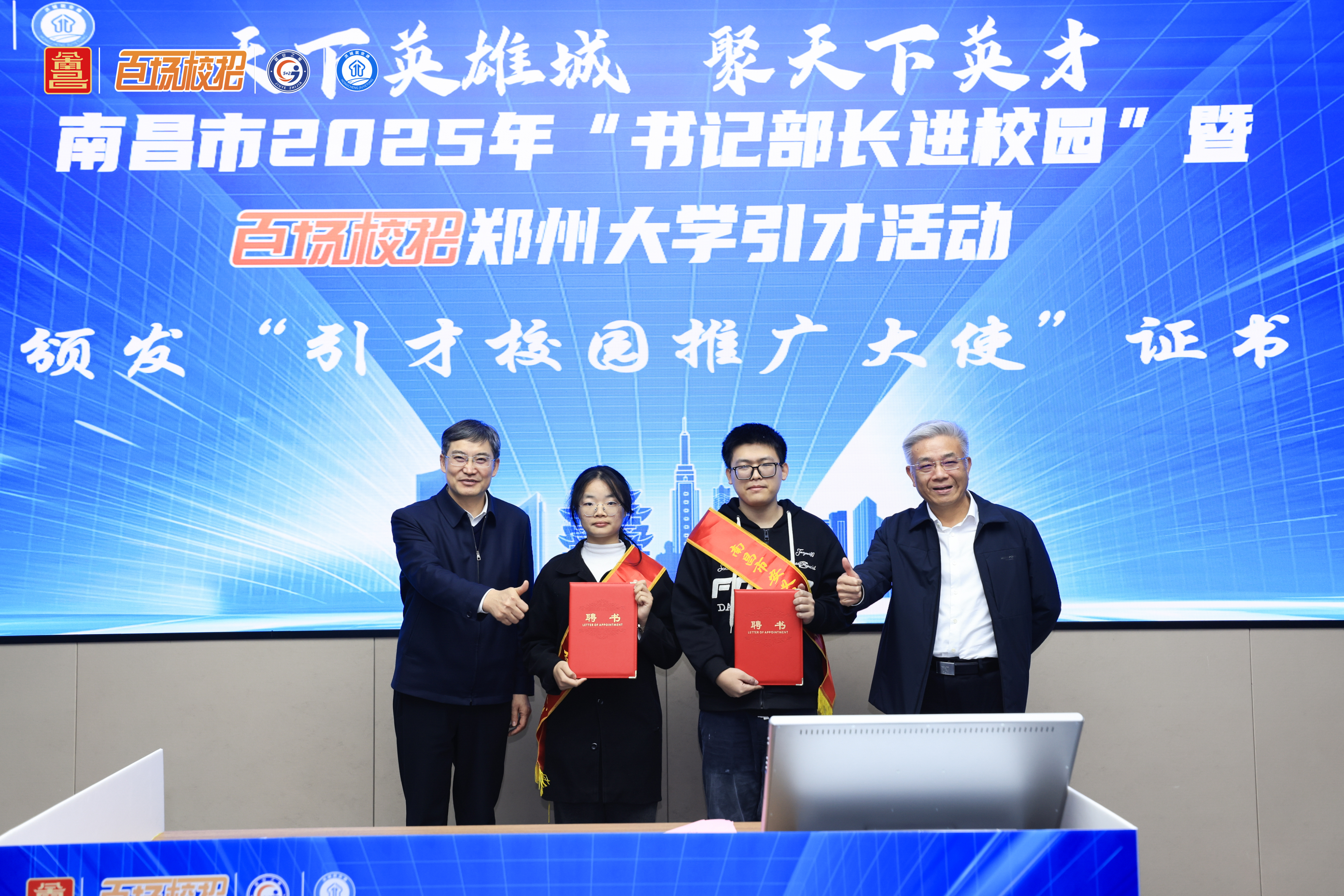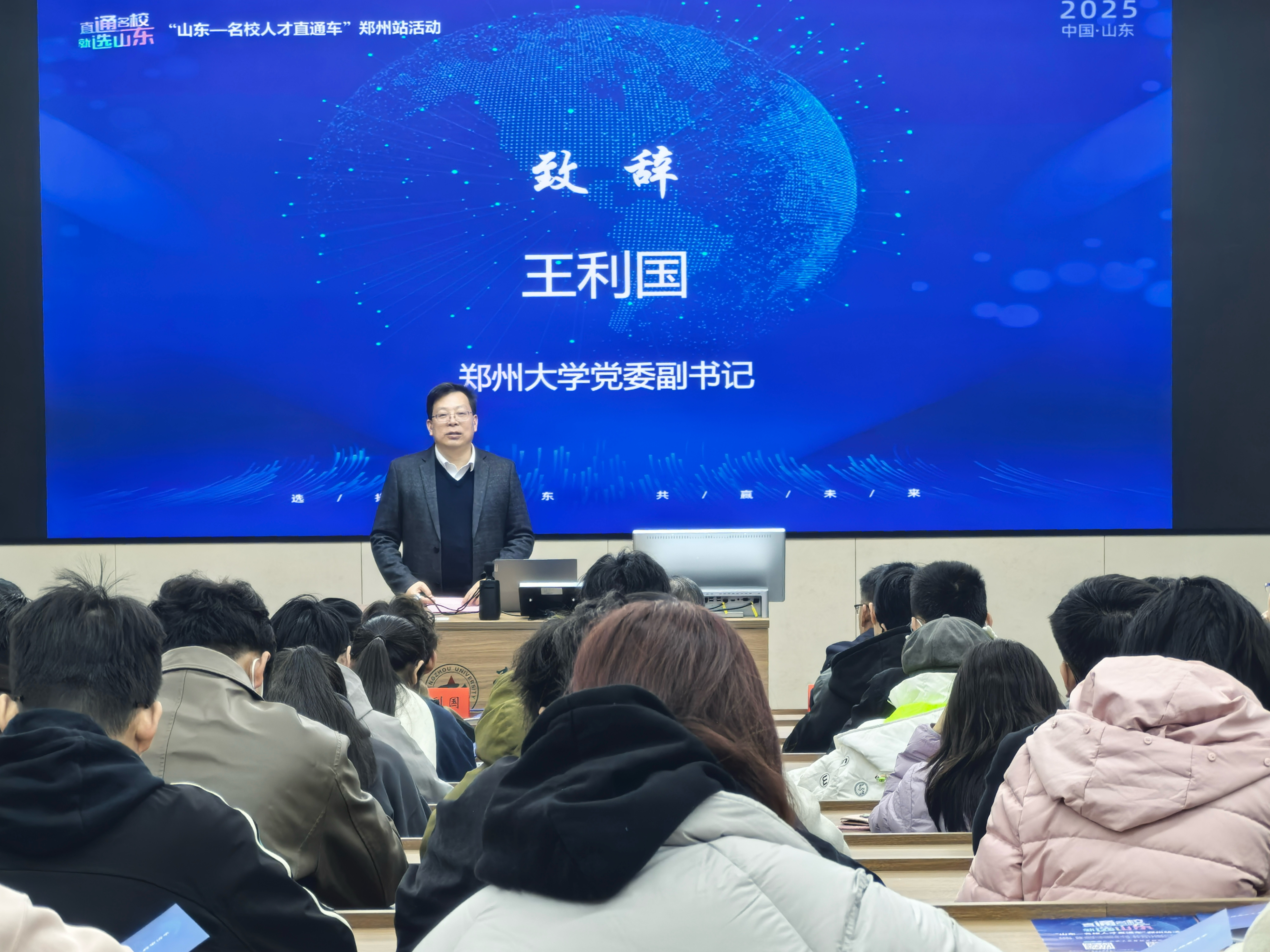 在山东省专场宣介中,王利国对山东省公共就业和人才服务中心纪委书记崔永民一行表示欢迎。他指出,山东是经济大省、人才强省,近年来与我校在人才培养、科研协同等方面合作密切。他希望以此次“直通车”为契机,进一步推动双方在毕业生输送、实习实践、区域引才等方面的深度对接,鼓励更多郑大学子选择山东、服务齐鲁。在安义县专场宣讲中,王海杰对南昌市政协副主席、安义县委书记谭伯乐带队来校招才引智表示感谢,并介绍了学校学科特色与育人成果。他指出,安义县近年来发展势头强劲,产业转型与人才政策亮点突出,希望校地双方以此次活动为纽带,共同探索“高校赋能县域经济”的特色路径,推动更多科研成果落地转化、更多优秀学子扎根安义。
