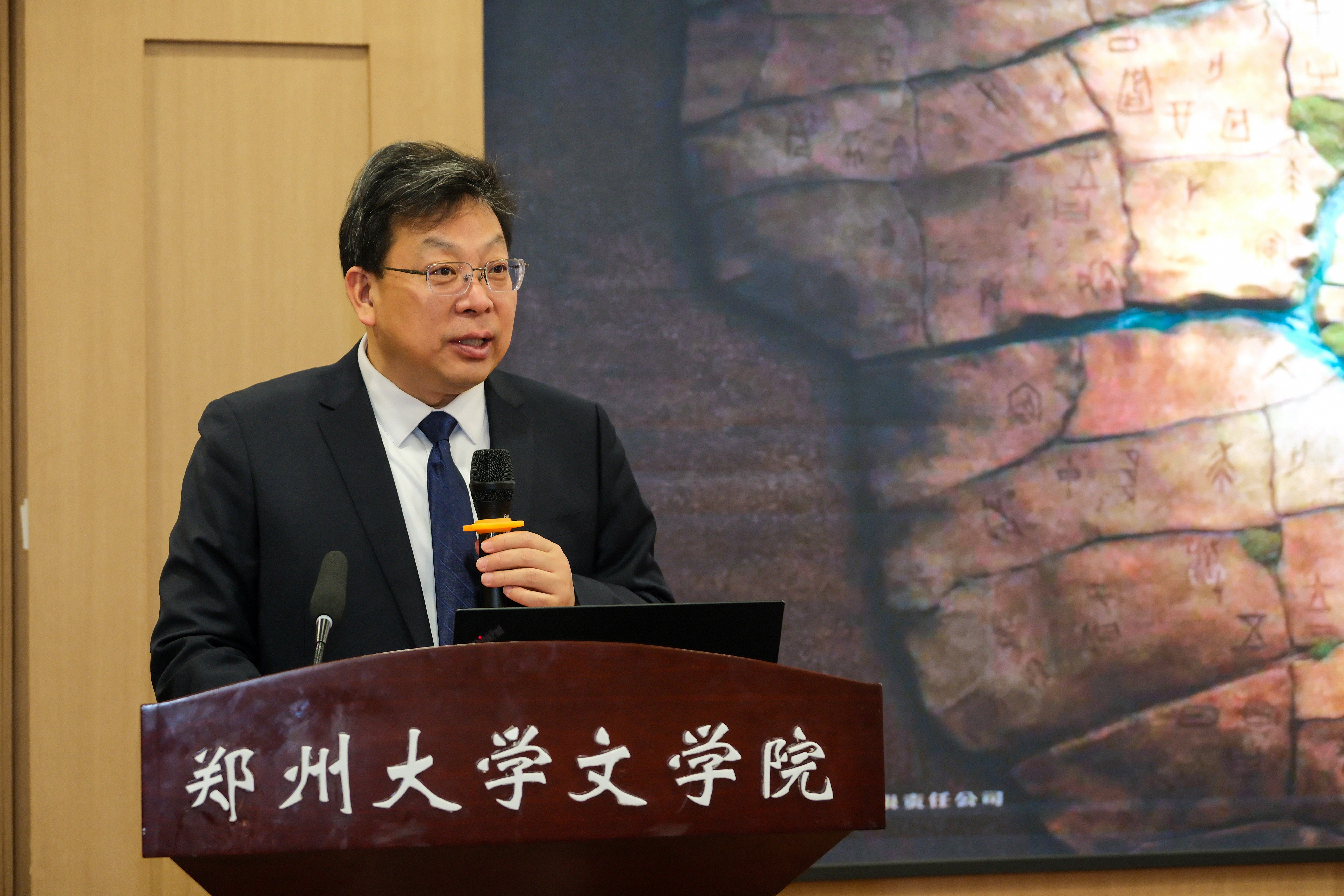 张斌在致辞中回顾了纪录片《一片甲骨》的创作与传播成效。他表示,该片是河南广电传承传统文化的重要实践,通过全媒体传播策略,推动甲骨文从“冷门绝学”走向“时尚国潮”,目前全网播阅量已超21亿。他对bat365在线中国官网登录入口汉字文明研究中心提供的学术支持表示感谢,认为该合作增强了影片的思想性与艺术性,并期待未来继续深化双方在文化创作与传播领域的协同合作。