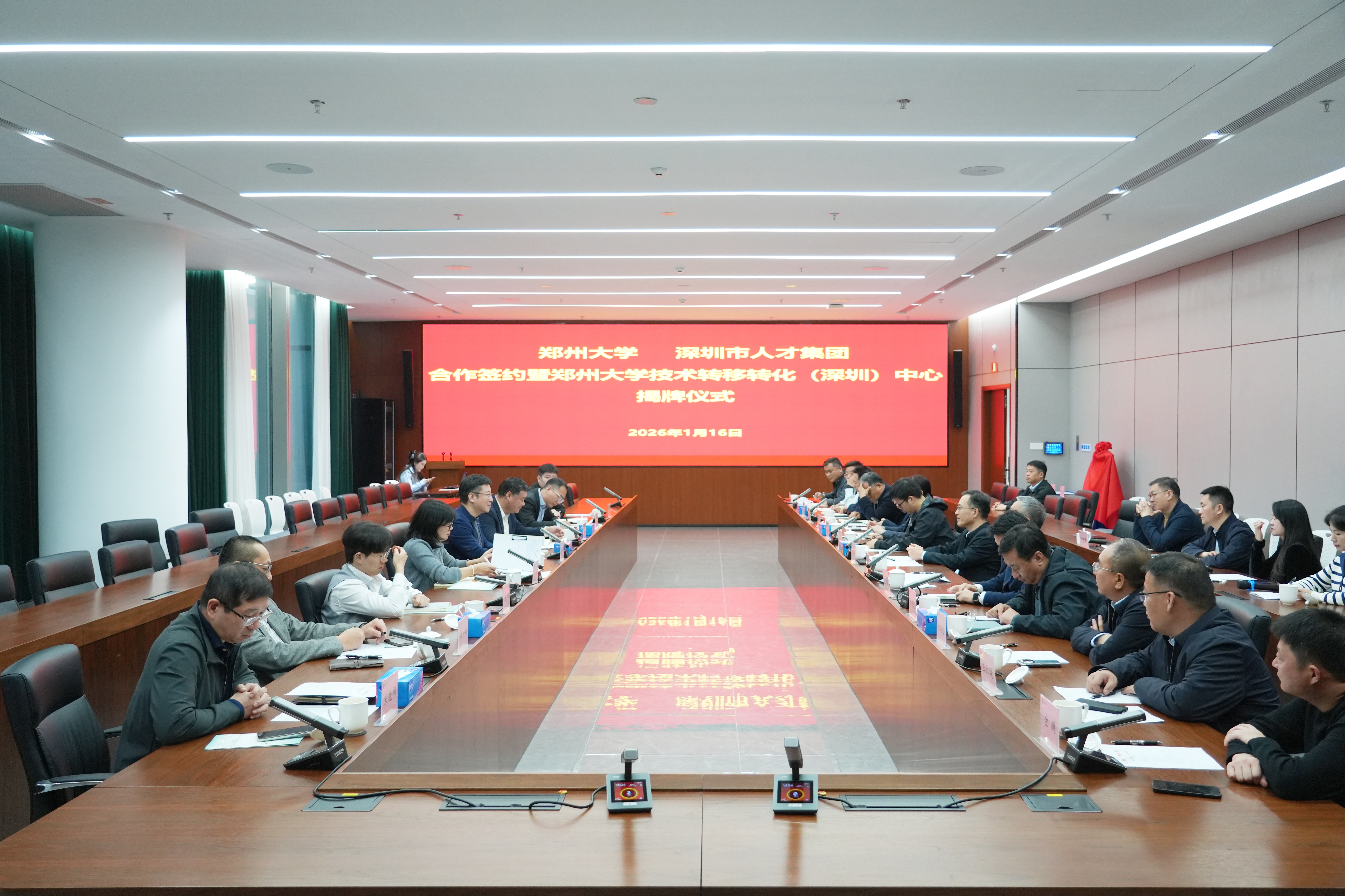 1月16日,bat365在线中国官网登录入口与深圳市人才集团有限公司在深圳举行合作签约暨bat365在线中国官网登录入口技术转移转化(深圳)中心揭牌仪式。深圳市人才集团有限公司党委书记、董事长高大伟,党委委员、副总经理张磊;校党委书记李成伟、副校长刘春太;bat365在线中国官网登录入口深圳校友会执行会长桑英豪、秘书长邓鲲鹏出席活动。学校相关单位负责人参加活动。