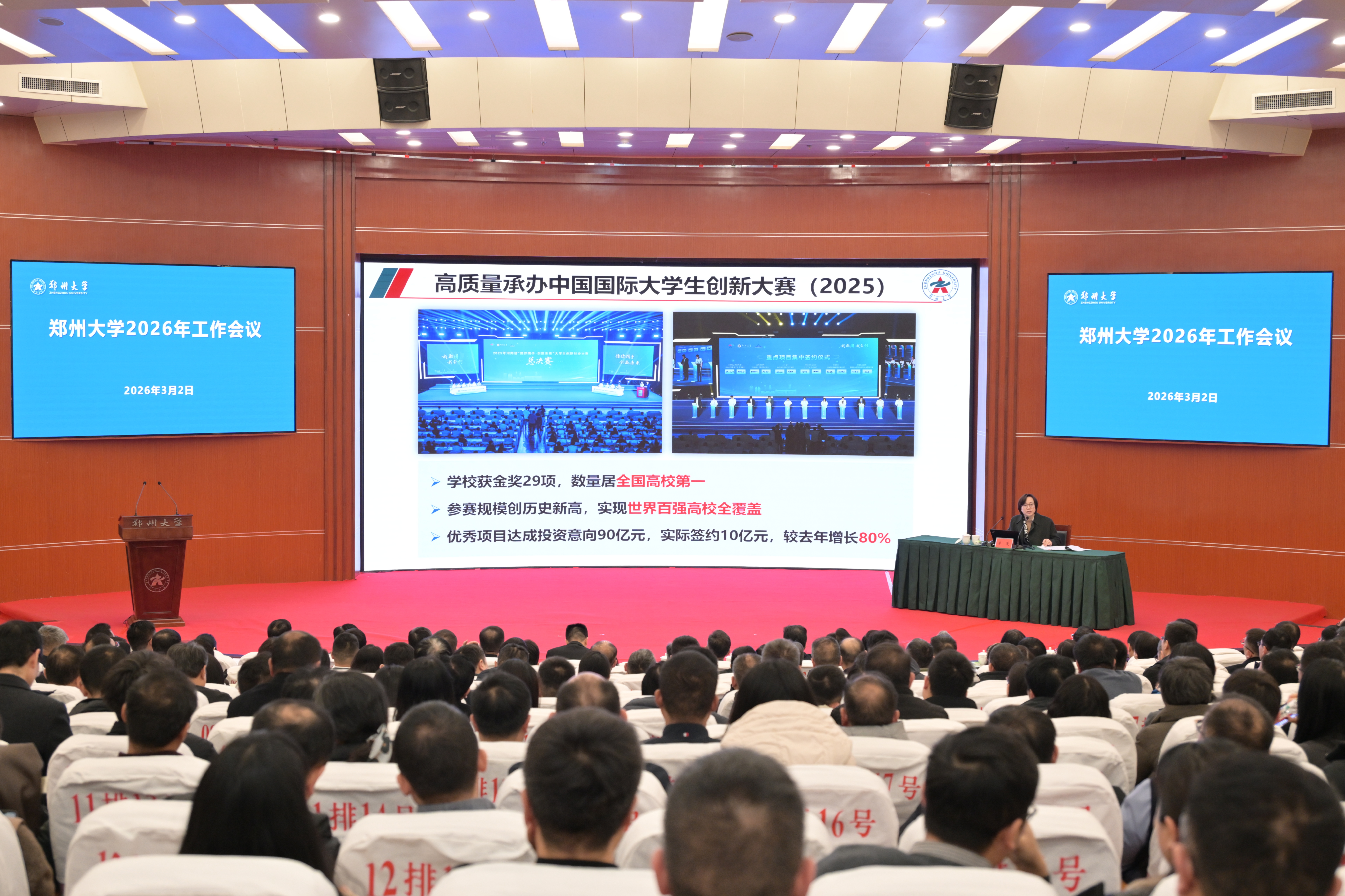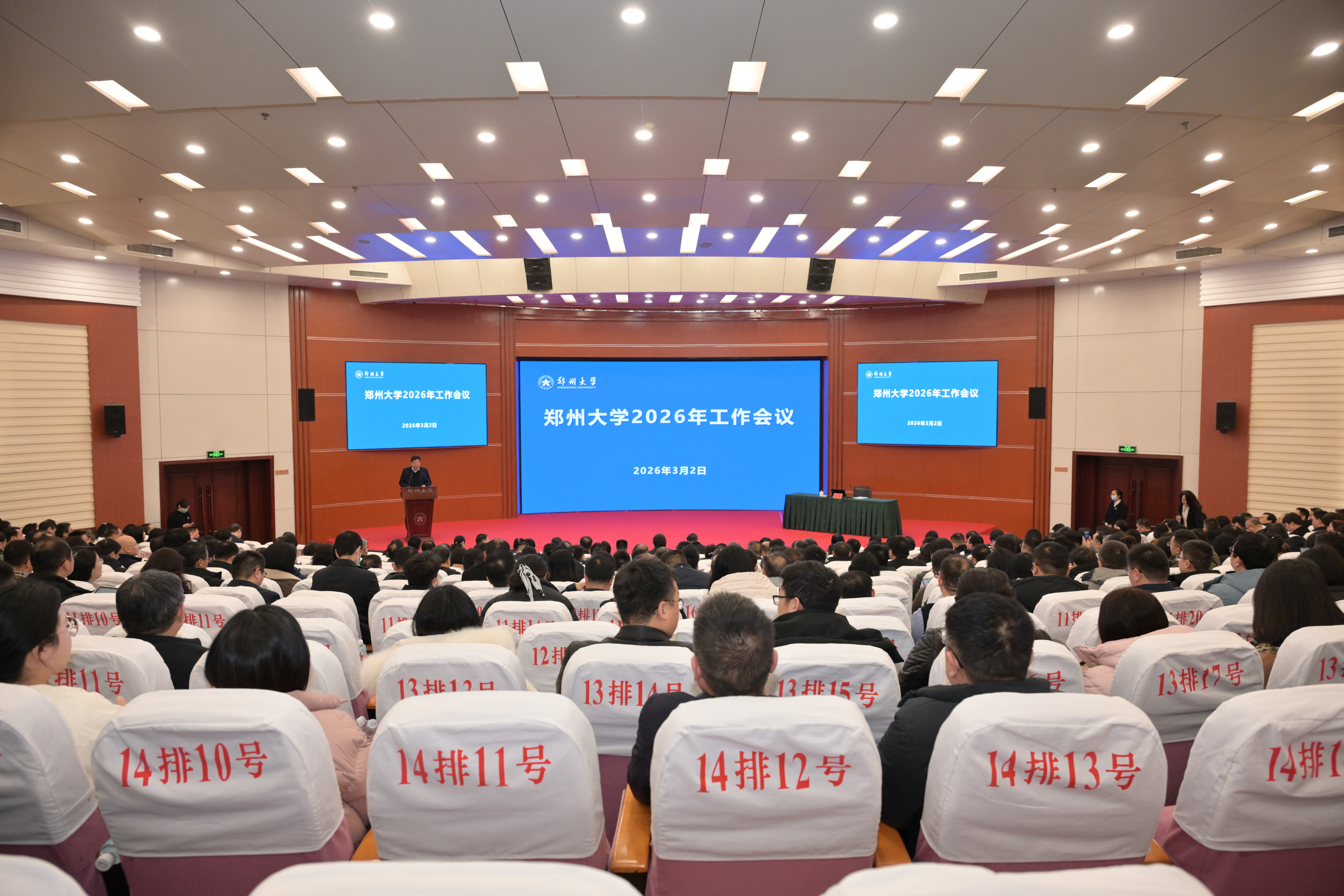 校党委书记李成伟在讲话中指出,2026年是“十五五”开局之年,是加快教育强国建设三年行动计划承上启下的关键之年,开局之年当有开局之势、奋进之姿、关键之为,要从全球竞争格局、教育职责使命、区域发展需求、社会环境结构等四个方面,深刻把握高等教育面临的内外形势,跳出教育看教育、立足全局看教育、放眼长远看教育,准确识变、主动求变、积极应变。他强调,要突出重点,围绕升级定位理念、明晰目标思路、提升治理效能、聚力实现突破,高质量编制“十五五”发展规划,集全校之力、以超常规举措,迎战“双一流”二期验收,把握政策机遇、谋划第三轮“双一流”建设,以入选高等教育综合改革试点为契机,系统推进育人模式、学科体系、科研机制、人事制度、评价机制、资源配置、内部治理等重点领域改革,激活内涵式发展动力,优化创新生态系统,构建“一城、一圈、一区、一港、一网、一赋能”协调联动、开放融合格局,以发展方式变革推动办学质量跃升。他强调,坚持党建强则事业兴,夯实党建基础,统筹推进党的政治建设、思想建设、组织建设、纪律建设、作风建设、制度建设,健全党建引领高质量发展、高效能治理、高水平安全的体系和机制,纵深推进全面从严治党,营造良好政治生态和发展环境,突出“齐、高、实、细、快、新”六字要求,以钉钉子精神抓好各项工作落实,切实把党的政治优势、组织优势转化为一流大学建设的实际成效。他要求,全校上下要解放思想、开放融合,上下同欲、勇毅前行,开足马力、奋进开局,推动一流大学建设提质晋位,为奋力谱写中原大地推进中国式现代化新篇章作出新的更大贡献。