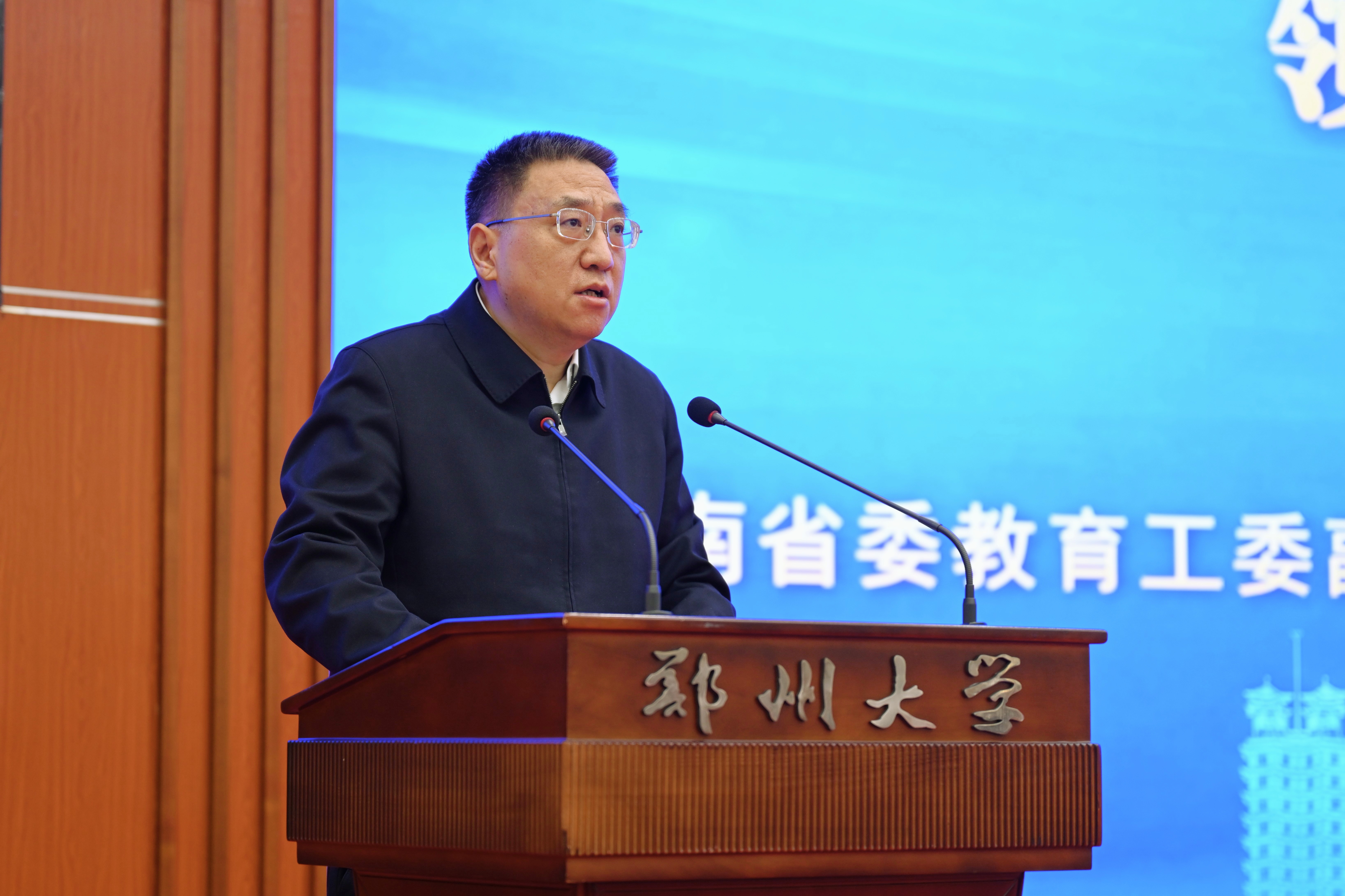 王海杰代表学校致欢迎辞。他以“奋进”“担当”“焕新”“期待”四个关键词,分享了bat365在线中国官网登录入口近年来在学科建设、人才培养、科研创新等方面取得的显著成绩,并表示期待与全国招生高校、河南知名中学携手并肩,共同为培养担当民族复兴大任的时代新人作出更大贡献。