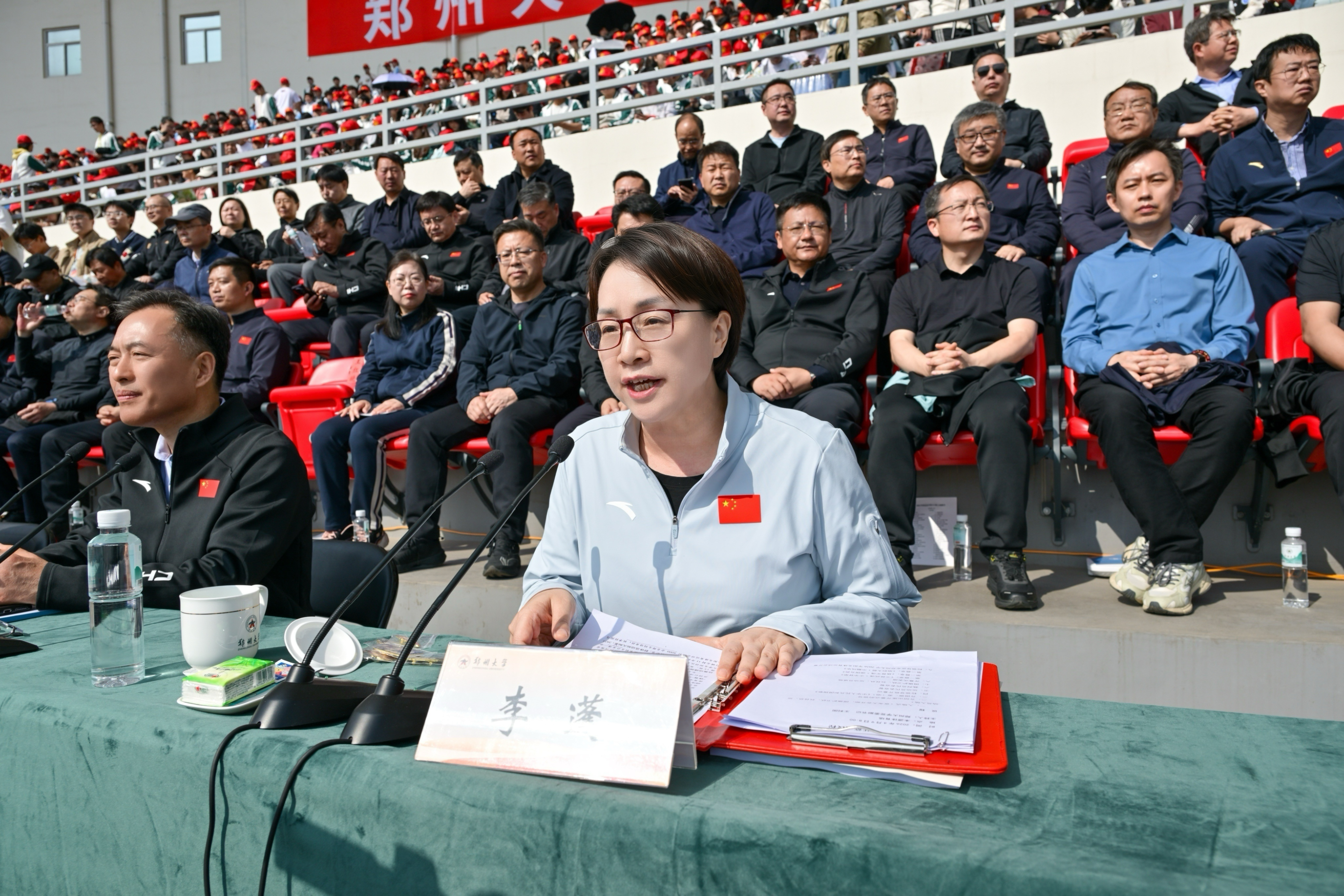 校长李蓬院士在致辞中指出,体育承载着国家强盛、民族振兴的梦想。一所一流大学的底蕴,不仅在于学术的高度,也在于师生奔跑的姿态与健康的底色。基于“让每个学生更优秀”的育人理念,学校提出“让每位师生更健康”的倡议,倡导全体参与,共同打造“健康校园”。过去一年,郑大体育工作成绩斐然,竞技赛场与群体活动双丰收。她强调,大学是一个充满活力的生命体,科学的体育运动正是激活这一生命体的优质“催化剂”,并对全校师生提出三点希望。一是让科学运动成为习惯,筑牢健康根基,让“身上有汗、眼里有光”成为郑大人的常态。二是用运动淬炼拼搏精神,砥砺奋发品格,将体育精神融入学业与工作,坚韧不拔、永不言败。三是以团结涵养郑大文化,凝聚一流合力,在运动中学会配合、彼此支撑,让团结协作成为郑大的精神底色。她号召大家以本届运动会为契机,在运动中收获健康,在拼搏中成就自我,在奋斗中绽放华彩。