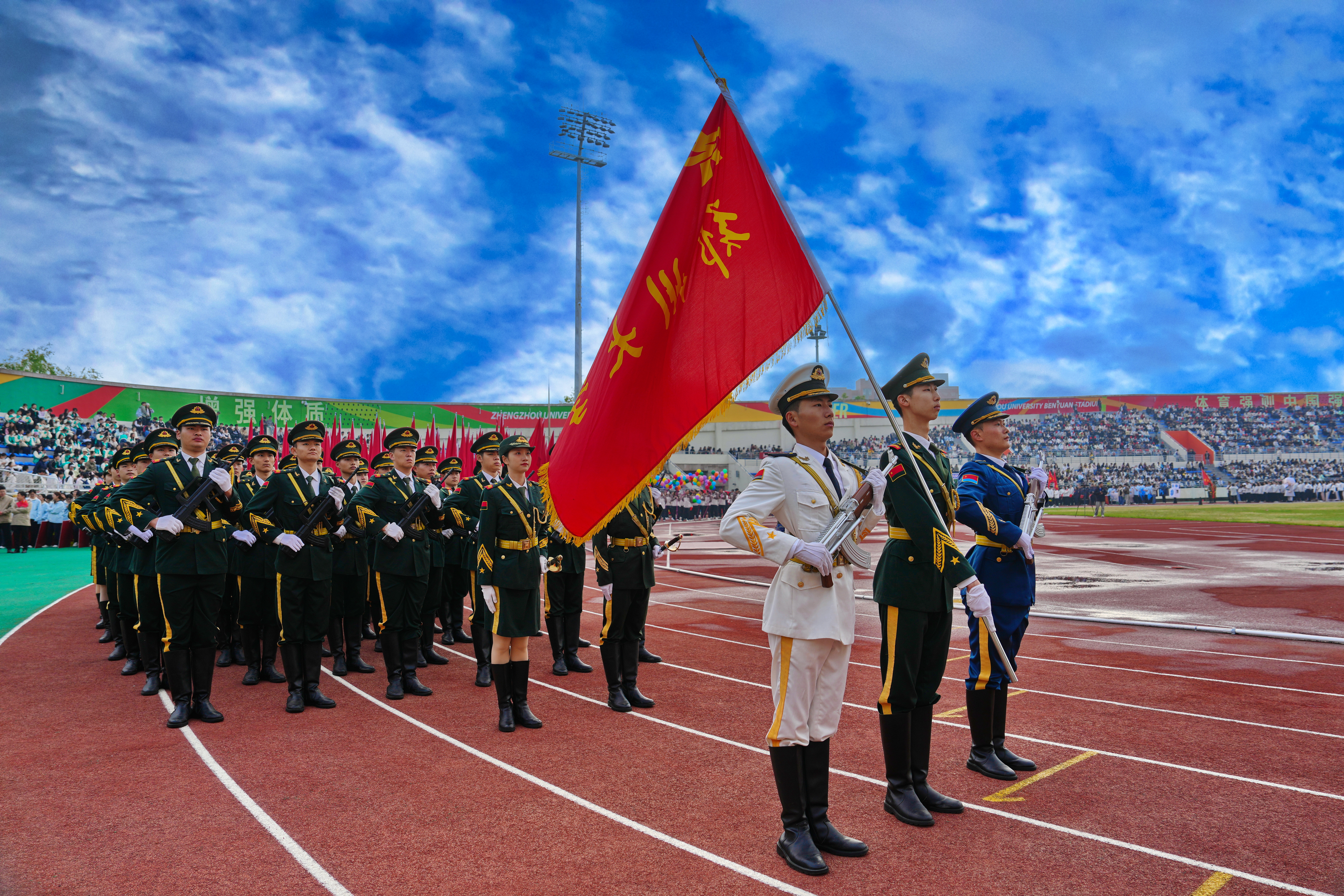 大型开幕式展演精彩纷呈。第一篇章《少林武魂·中华脊梁》中,少林塔沟武校170名少年以刚劲雄浑的中华武术展现武学风骨,挺起民族脊梁,一招一式打出浩然正气,彰显中华少年的责任担当。第二篇章《旗舞军魂·强国有我》中,运动与体育学院400余名学子挥舞鲜红旗帜,舞出青春军魂,纪念红军长征胜利90周年,立下“强国有我”的青春誓言,向革命先辈深情致敬。第三篇章《扇韵太极·巾帼风华》将太极与扇舞相结合,全校50多个基层工会的750名女教职工以太极扇演绎东方雅韵,绽放师者风华,展现新时代女教职工的昂扬风貌。