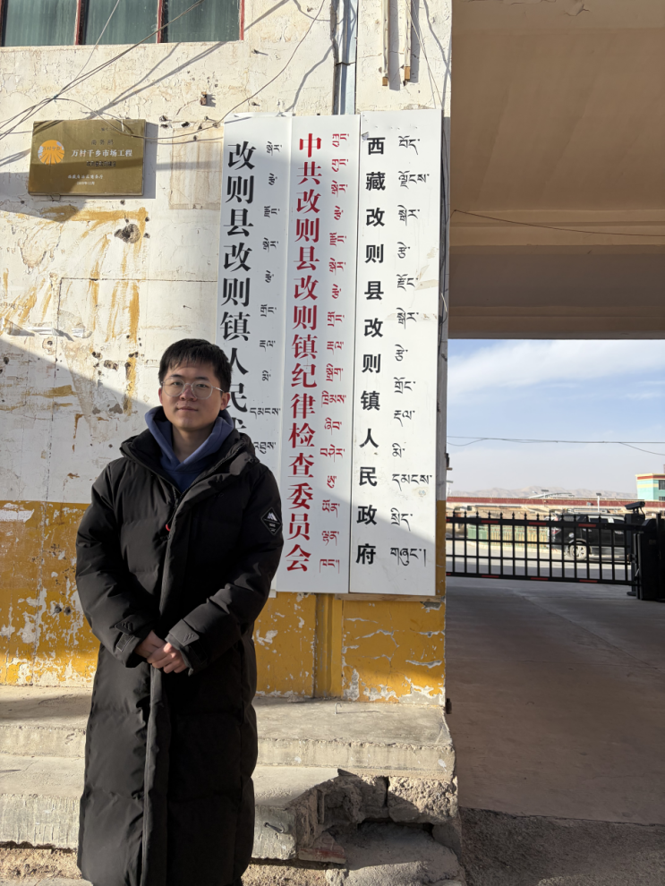 经过一系列考试,2025年9月1日,秦矗踏上了前往西藏的道路。当天夜里,他高原反应严重,头疼发作,整晚发热、盗汗。经过9个多小时,他终于抵达改则镇(改则县城所在地)——那个人口只有2万、面积却有三分之二个河南大的县城。跨越山海的征程,是对初心的第一次淬炼。看到牧民脸上淳朴的笑容,他下定决心——要把青春奉献在祖国的这片辽阔大地上。