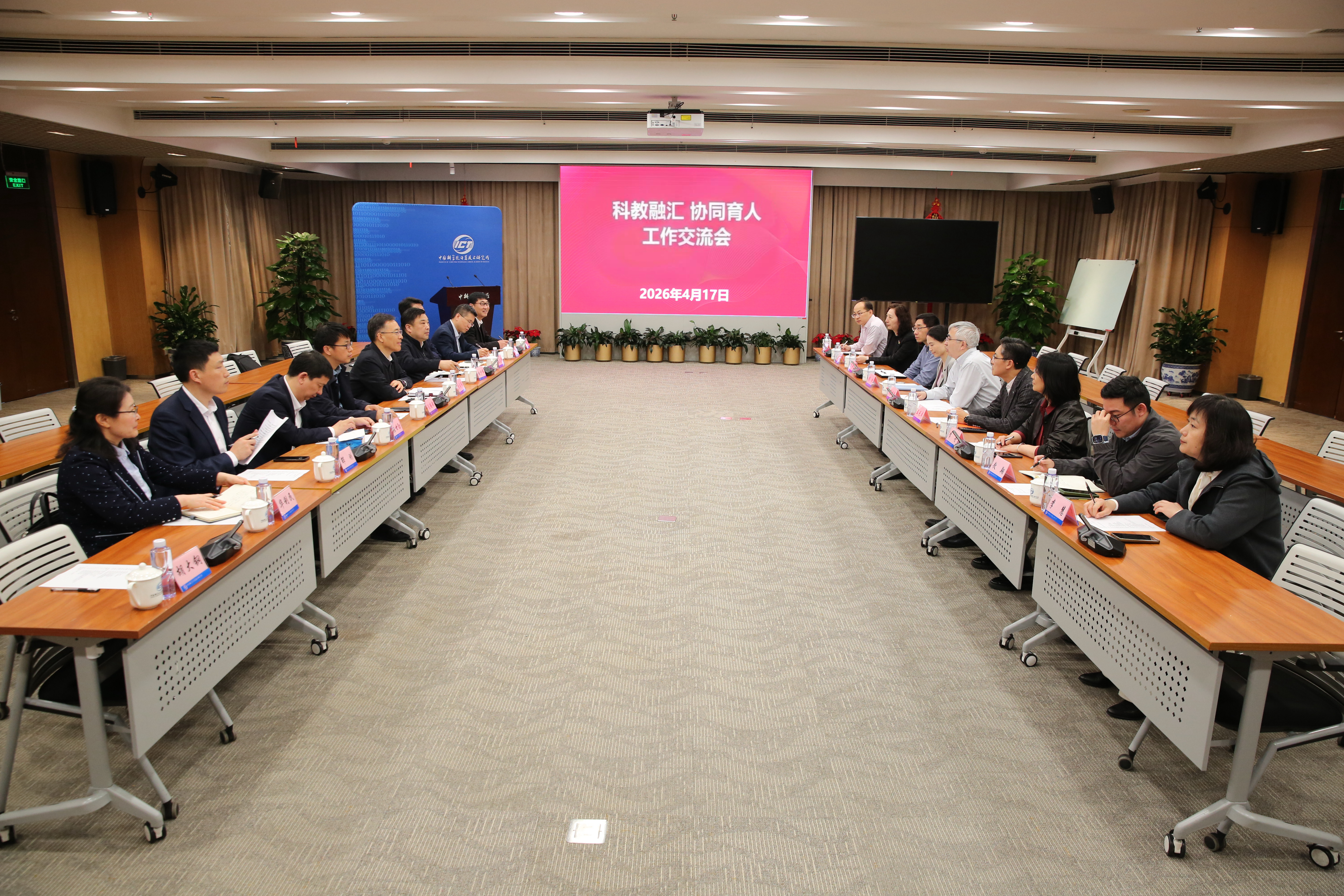 4月17日,bat365在线中国官网登录入口与中国科学院计算技术研究所“科教融汇、协同育人”工作交流会在北京举行。中科院计算所所长、党委书记陈熙霖,bat365在线中国官网登录入口党委书记李成伟,校党委常委、副校长胡少伟出席会议。校党委常委、组织部部长陈继超,党委办公室、研究生院、河南先进技术研究院、卓越工程师学院、计算机与人工智能学院,中科院计算所教育处及科研机构负责人参加交流。
