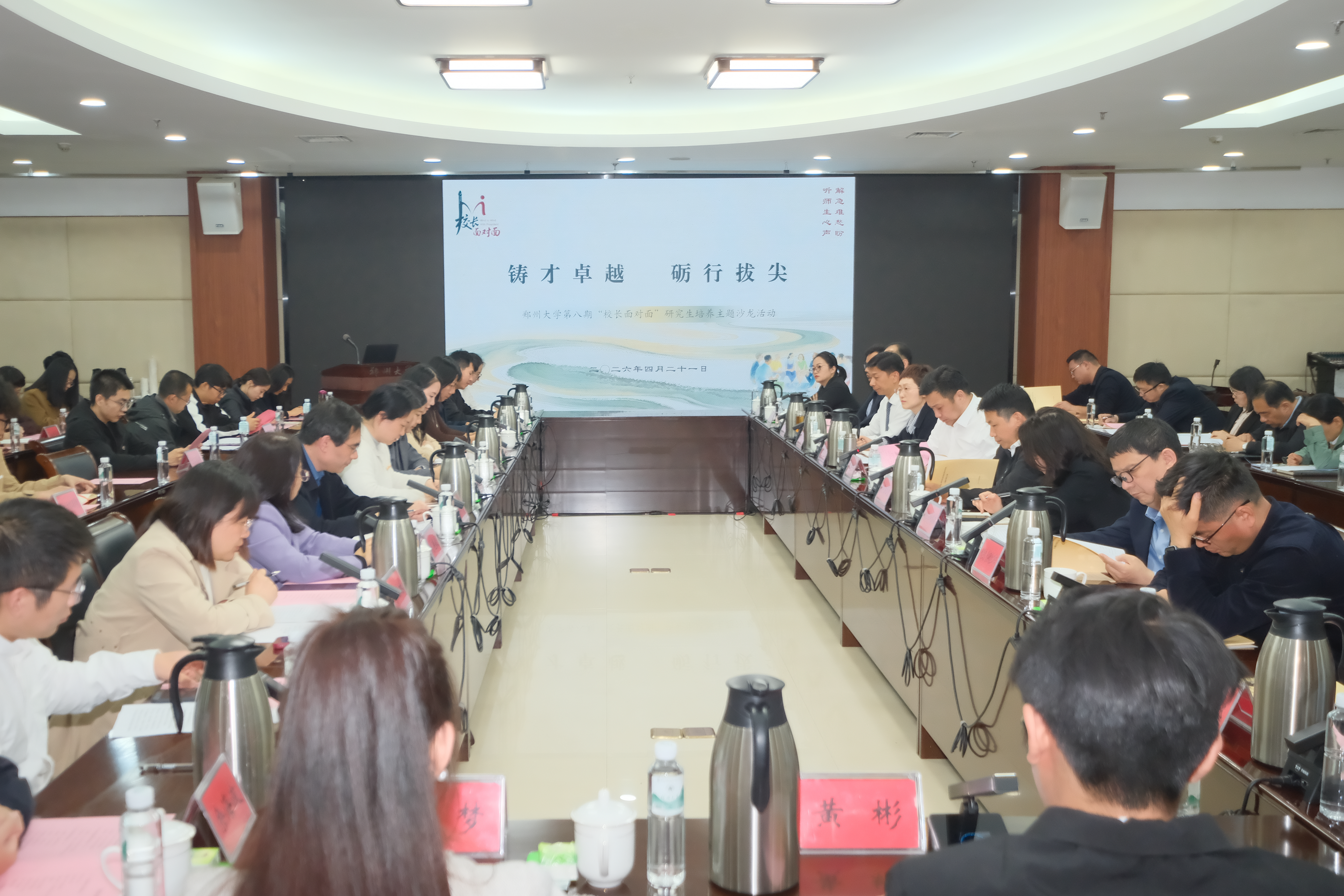 倾听一线心声,共筑卓越之路。4月21日,bat365在线中国官网登录入口第八期“校长面对面”主题沙龙在主校区举行。校党委常委、副校长胡少伟与相关职能部门负责人、各学院师生代表齐聚一堂,围绕“铸才卓越、砥砺前行”主题深入交流,共同剖析研究生教育存在的问题和不足,广泛听取意见建议,探讨推进研究生教育高质量发展的实践路径。