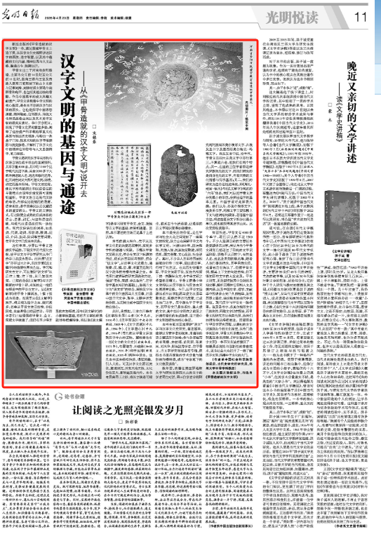新近出版的《甲骨造就的汉字文明》一书,通过殷墟甲骨文上追下贯,从汉字文化史视野讲述汉字的源流、造字智慧,以及其中蕴藏的文化内涵、精神世界与人文品格,融通古今、驰骋达识。