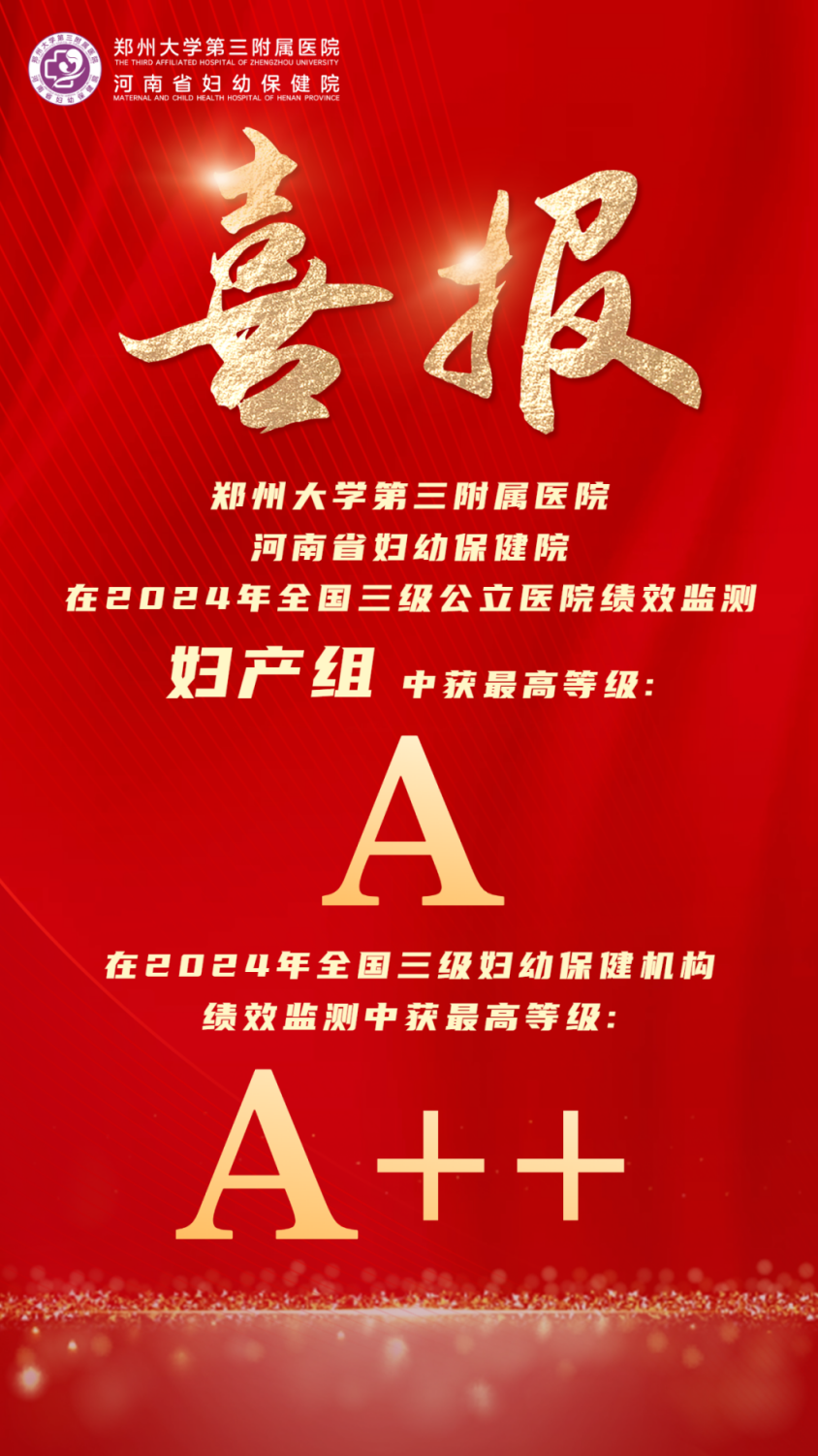 近日,国家卫生健康委公布2024年度全国三级公立医院绩效监测结果,bat365在线中国官网登录入口第三附属医院(河南省妇幼保健院)凭借扎实的综合实力,在妇产专科类别中再度荣获最高等级A,同时在此前公布的2024年全国三级妇幼保健机构绩效监测中也荣获最高等级A++,在全国参评妇产专科医院/妇幼保健机构中稳居第一方阵。