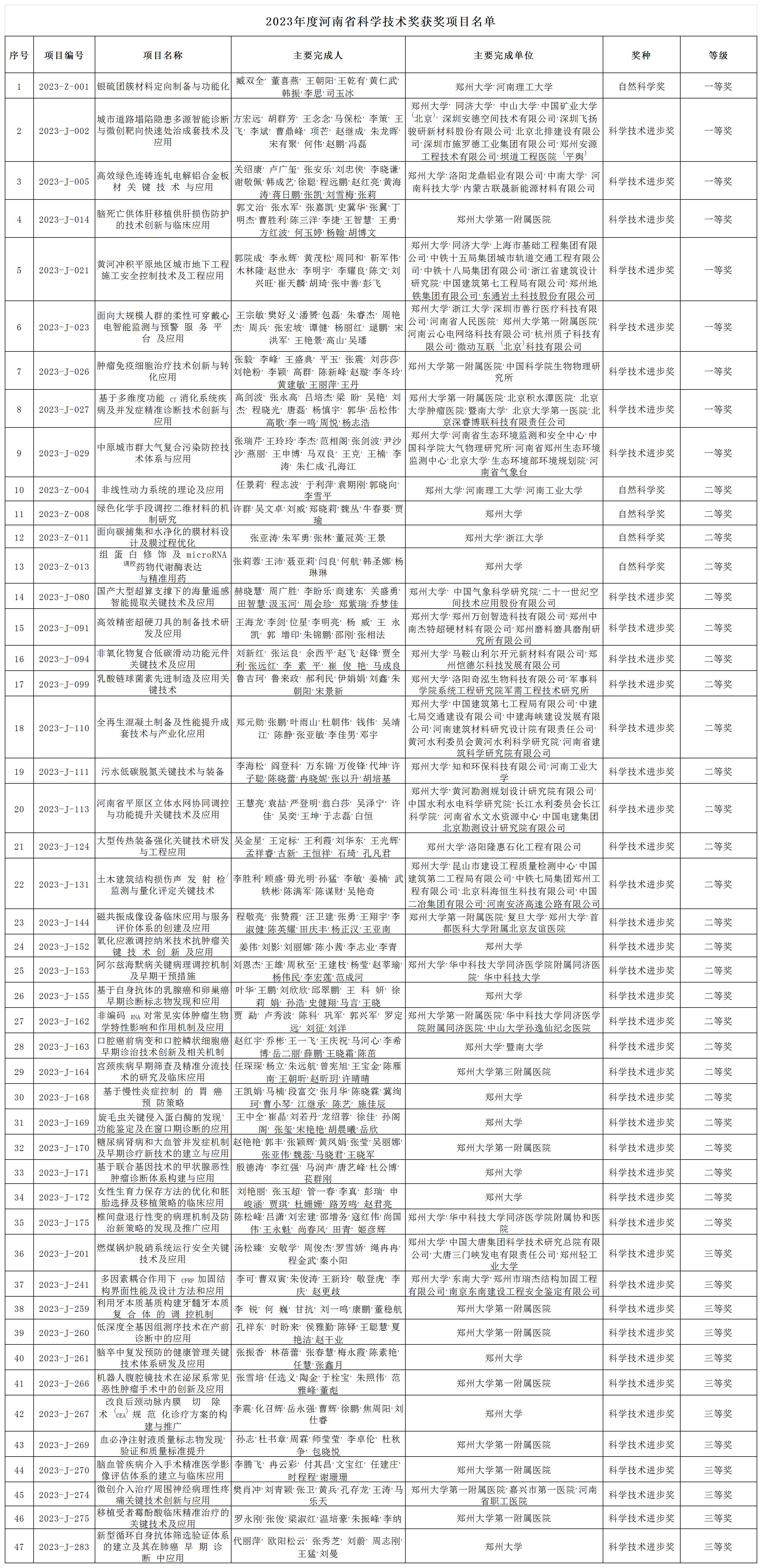近日,河南省人民政府公布了2023年度河南省科学技术奖励名单,bat365在线中国官网登录入口再创佳绩,以第一单位荣获河南省科学技术奖47项,其中一等奖9项,二等奖26项,三等奖12项。获奖总数和一等奖获奖数量均打破学校纪录,取得历年来最好成绩。