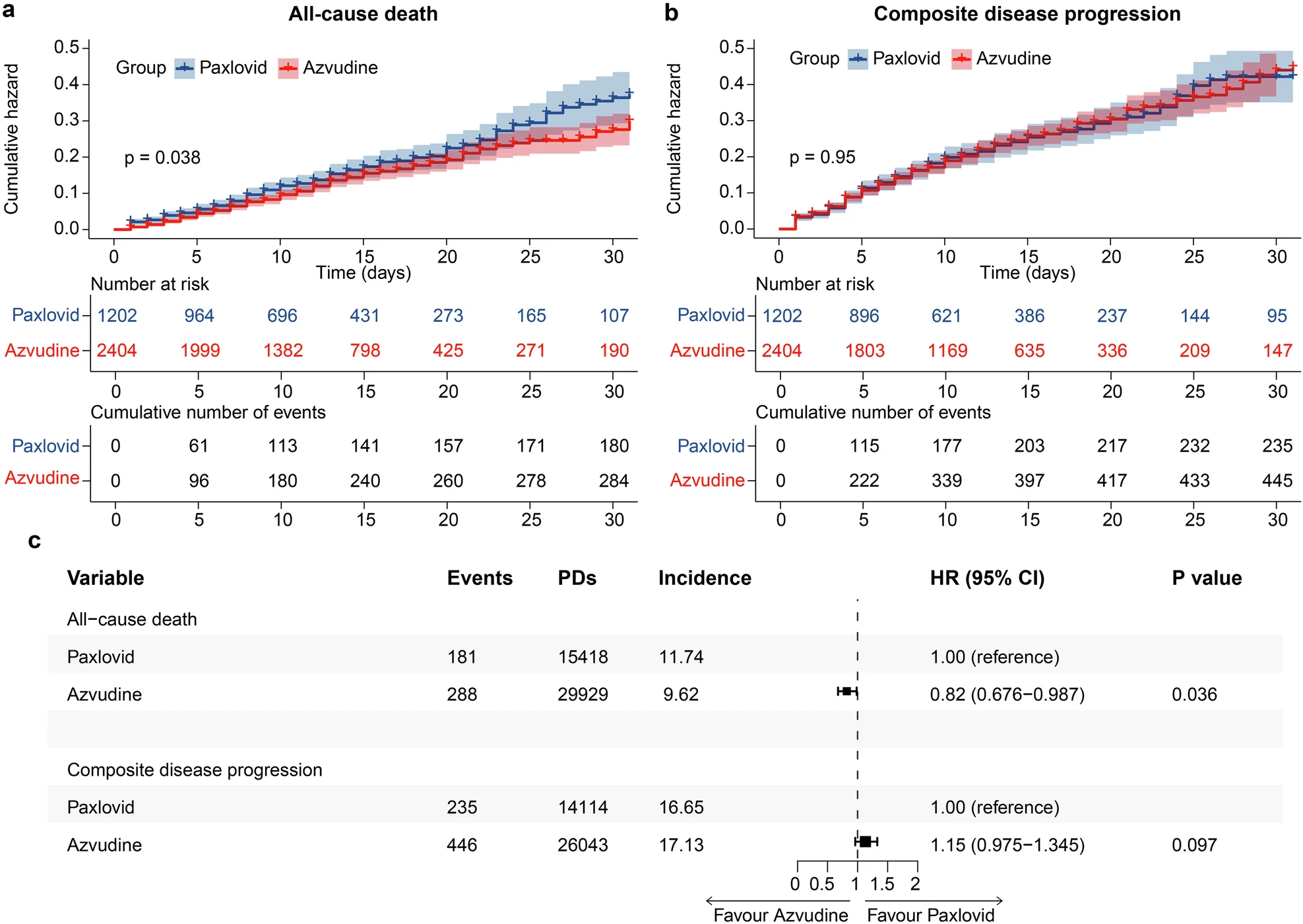 以“Real-world effectiveness and safety of oral azvudine versus nirmatrelvir‒ritonavir (Paxlovid) in hospitalized patients with COVID-19: a multicenter, retrospective, cohort study”为题的研究成果发表在Nature旗下顶尖期刊《Signal Transduction and Targeted Therapy》上。文章指出,奈玛特韦/利托那韦(Paxlovid)作为国际公认的新冠治疗药物,已在多项临床试验和真实世界研究中证实疗效,尤其是在降低住院率和死亡率方面表现突出。而Paxlovid的高成本、药物相互作用(如与CYP3A代谢药物的冲突)以及部分患者的不耐受性,限制了其广泛应用。阿兹夫定片作为一种价格更低、使用更方便的药物,与Paxlovid在有效性和安全性上相比如何呢?针对这一问题,余祖江教授团队开展阿兹夫定片与Paxlovid治疗新冠病毒感染的回顾性队列研究。该研究覆盖河南、新疆两省11家医院,共纳入40876例患者。结果显示:相比于Paxlovid组,阿兹夫定片组全因死亡风险显著降低18%(P=0.036),复合疾病进展风险无显著差异,且不良事件较少。亚组分析显示,阿兹夫定片为恶性肿瘤患者提供了更大的益处,能显著降低全因死亡风险(HR=0.33)和复合疾病进展风险(HR=0.54)。进一步通过体内外实验证实阿兹夫定片可以通过调节CD4⁺T和CD8⁺T细胞来抑制肝细胞癌生长。bat365在线中国官网登录入口余祖江教授、任志刚主任医师与常俊标院士为通讯作者,王海宇博士生、崔光莹副主任医师、程铭高级工程师、新疆医科大学一附院吐尔干艾力·阿吉教授、洛阳市中心医院李国涛主任医师为共同第一作者。