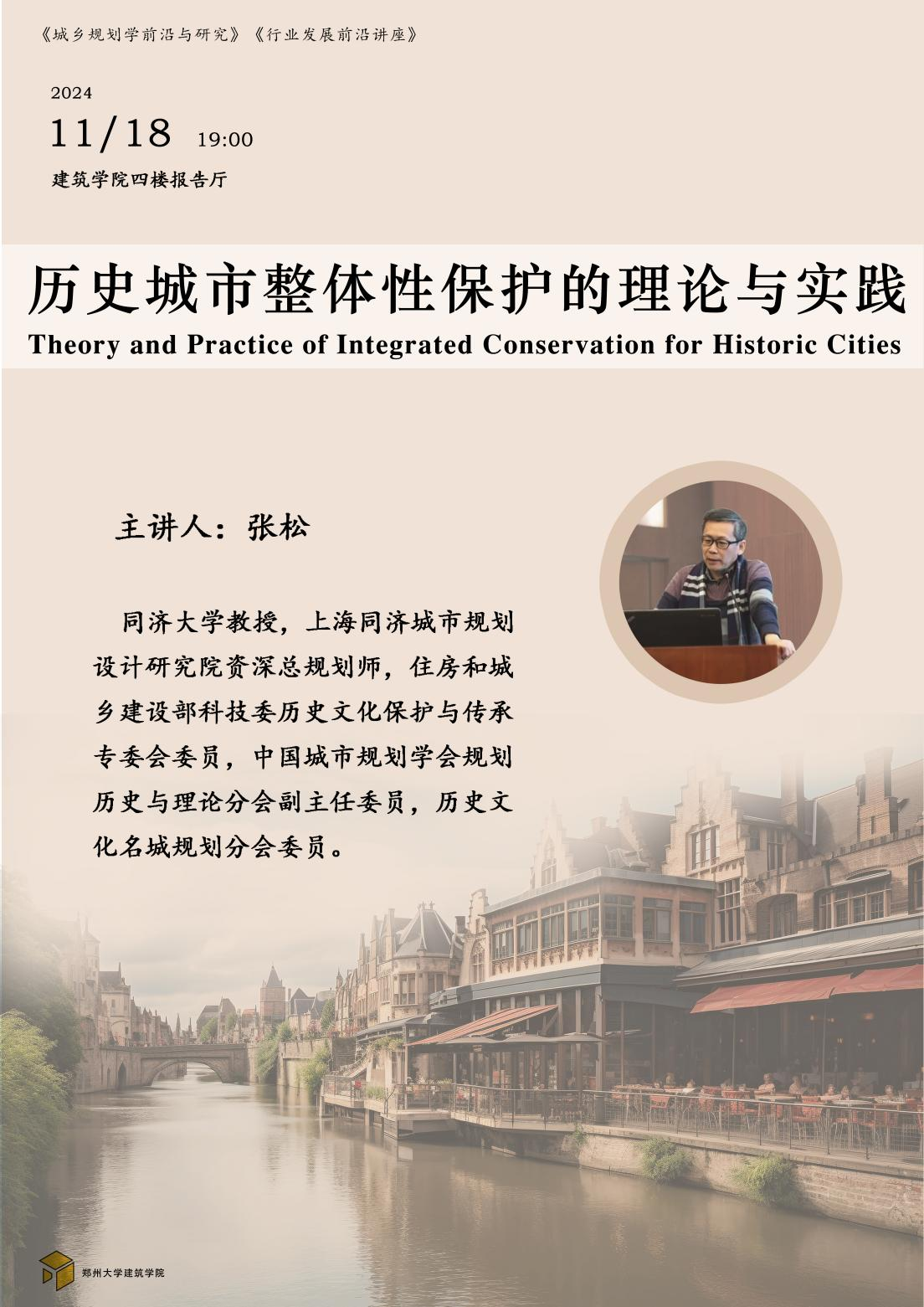 为拓宽研究生的学术视野,关注城乡规划学前沿与研究趋势,bat365在线中国官网登录入口建筑学院特邀同济大学建筑与城市规划学院张松教授作《城乡规划学前沿与研究》《行业发展前沿》研究生课程系列讲座之《历史城市整体性保护的理论与实践》。张松教授长期致力于城市规划和遗产保护的教学研究工作,在历史城市保护领域有着丰富的理论与实践经验,结合历史城市保护的国际视野与本土实践,国内外历史城市保护的成功案例,探讨通过整体规划与综合施策实现历史城市的可持续发展,敬请各位师生莅临。