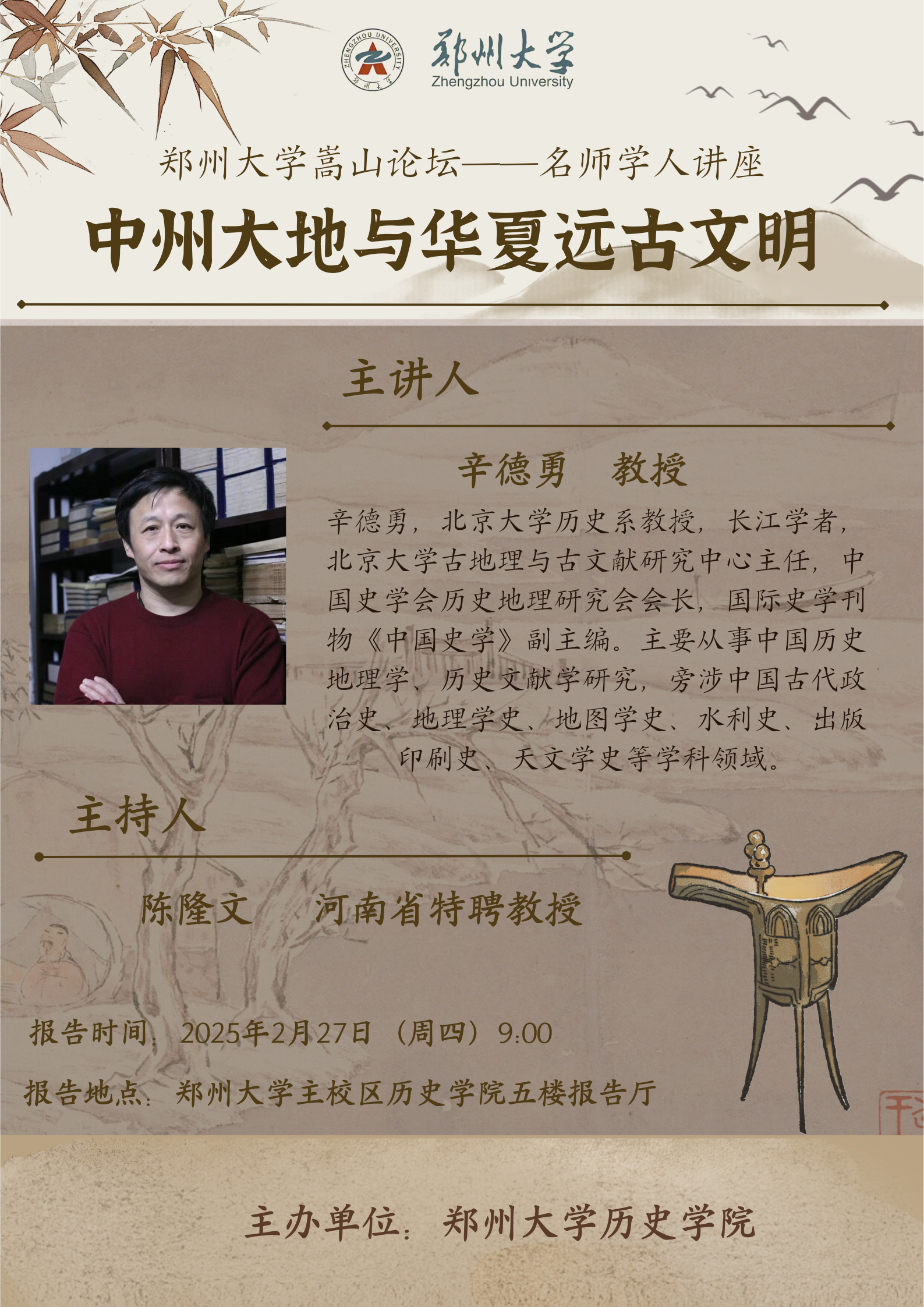 bat365在线中国官网登录入口嵩山论坛——名师学人讲座第三十八讲邀请北京大学历史系辛德勇教授作学术讲座,欢迎全校师生参加!