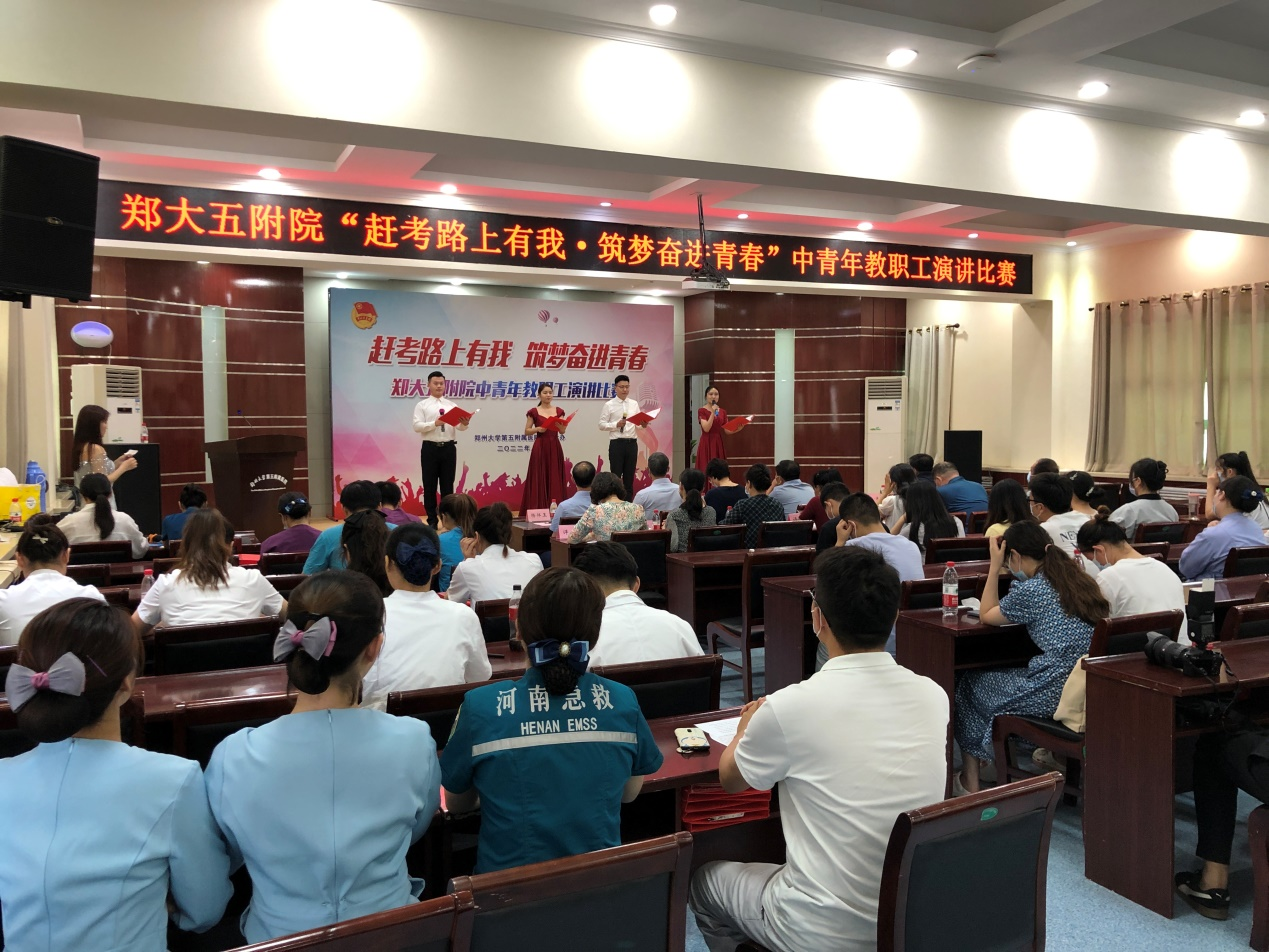近日,bat365在线中国官网登录入口第五附属医院举办“赶考路上有我 筑梦奋进青春”中青年教职工朗诵比赛。医院负责同志、各支部职工代表及新入职职工参加,各党总支书记受邀担任评委。