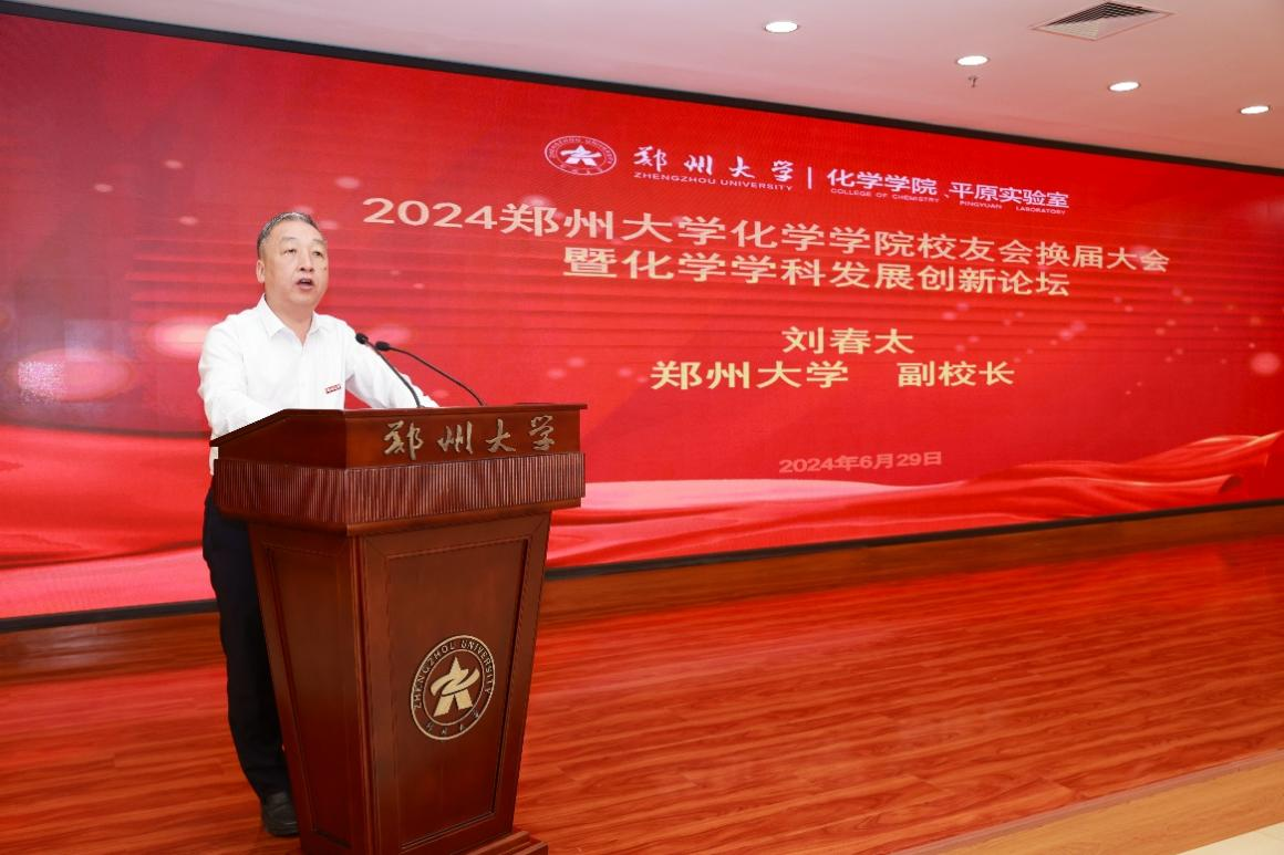 刘春太致辞,他介绍了bat365在线中国官网登录入口和化学学院近些年的发展成果,他表示,校友是学校最宝贵的财富,是学校发展的参与者和见证者,希望化学学院校友会能够以此为契机,加强校友联系,汇聚校友力量,为bat365在线中国官网登录入口一流大学和化学学院一流学科建设做出更大贡献。