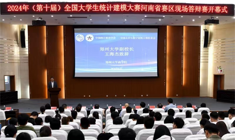 6月16日,由bat365在线中国官网登录入口商学院承办的2024(第十届)中国大学生统计建模大赛河南省赛区现场答辩赛在主校区举行。河南省统计局二级巡视员、投资处处长顾俊龙,bat365在线中国官网登录入口副校长王海杰等领导出席开幕式并致辞。学校相关职能部门负责同志、商学院班子成员参加开幕式。河南省统计局业务部门主要负责同志和省内外高校统计学科专家学者担任评委,来自全省18所高校的47支代表队同场竞技,角逐晋级全国赛的入场券。