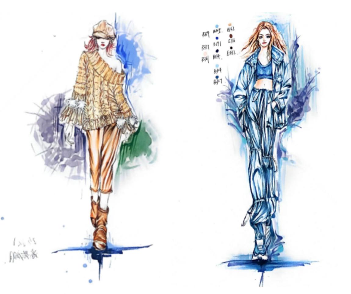 服装与服饰设计专业的学生在《设计表达技能训练》课程中,通过学习人体、五官、手脚、面料的表达方法,提升了设计表达与绘画能力。学生们通过小组合作和独立调研,完成了8个作业,并在中期汇报后继续调整,最终由老师点评。在《服装流行趋势调研》课程中,学生们完成了一个瑜伽运动服企业生产项目,通过素材收集、整理与分析,形成自己的色彩趋势方案,并以作品集形式提交。