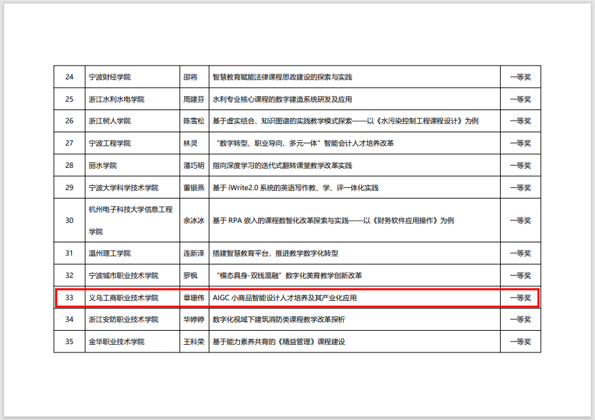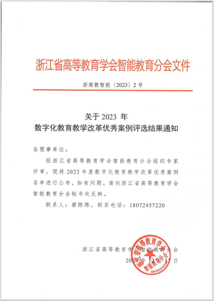 近日,beat365在线唯一官网产品艺术设计专业的《基于AIGC技术产品艺术设计专业数字化改造升级案例》获得由浙江省高等教育学会牵头组织征集的2023年数字化教育教学改革优秀案例一等奖。