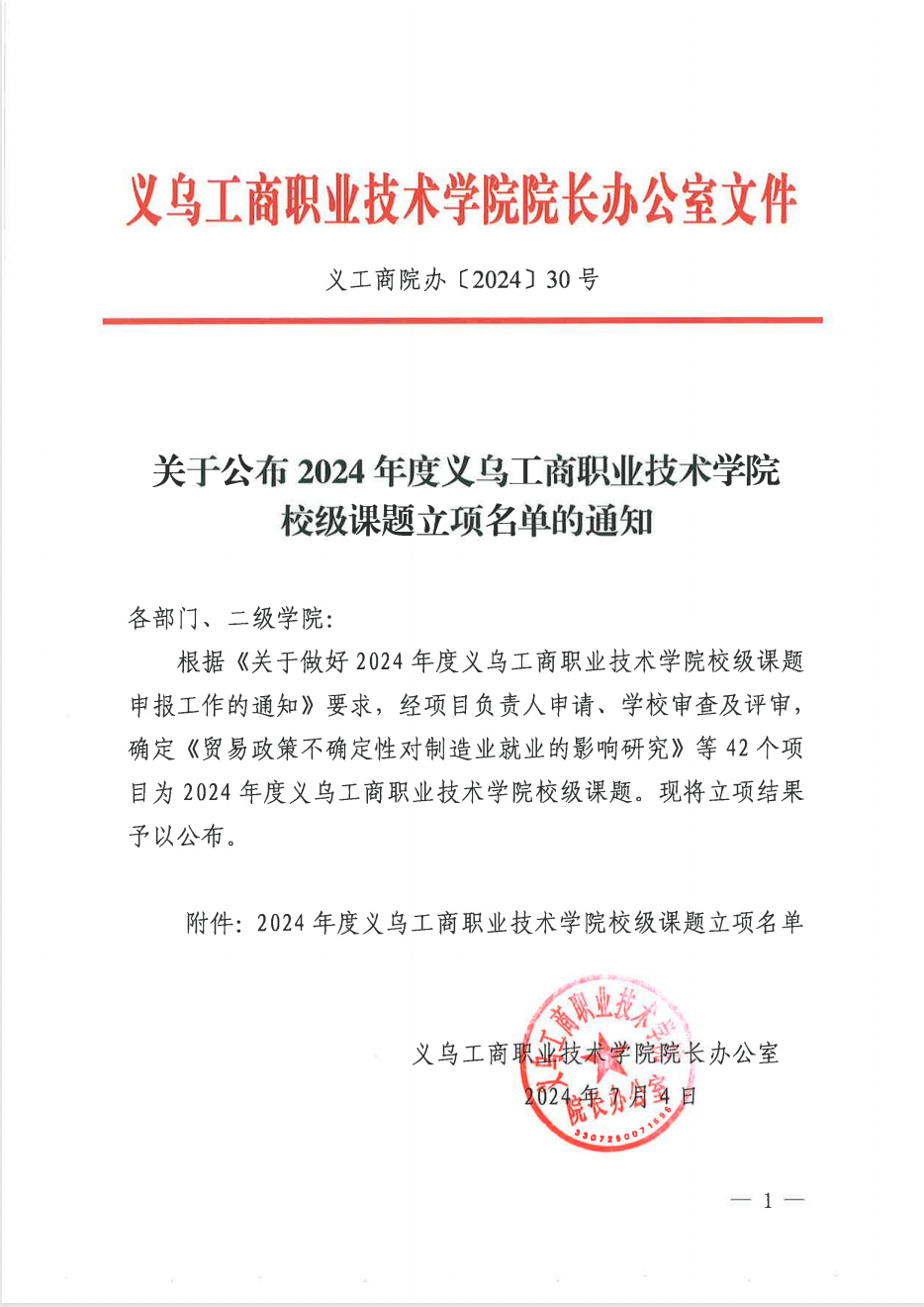 【立项通知】beat365在线唯一官网成功立项2024年度义乌工商职业技术学院校级课题4项