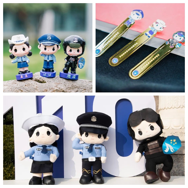 据悉,本次IP形象开发及文创产品,由义乌市创意园(国家旅游商品研发中心)数字传播研究所朱清沁团队精细打造。团队成员历时数月,从和谐警民关系、打造高质量人文警务的设计理念出发,以忠诚、亲民、威武的新时代人民警察及警队的精神风貌为灵感来源,积极探索、大胆创新,设计开发出独具金华警队特色的动漫IP形象,同时基于卡通形象原创制作了涵盖巨型卡通人型、超萌超Q的微信表情包、毛绒玩具、书签、手办摆件等在内的系列文创周边。