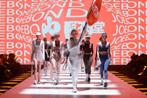 色彩鲜亮明快的糖果运动服、采用“黑科技”实用新型面料的专业瑜伽服、融合传统文化元素的新国潮产品、跨界互动的联名创意……在以“无界”为主题的秀场T台上,户外运动、多巴胺、功能性、奶茶联名等四个主题的百余套设计作品轮番登台,在专业模特的演绎下,让现场的商业“燃点”和人气“燃点”爆棚。