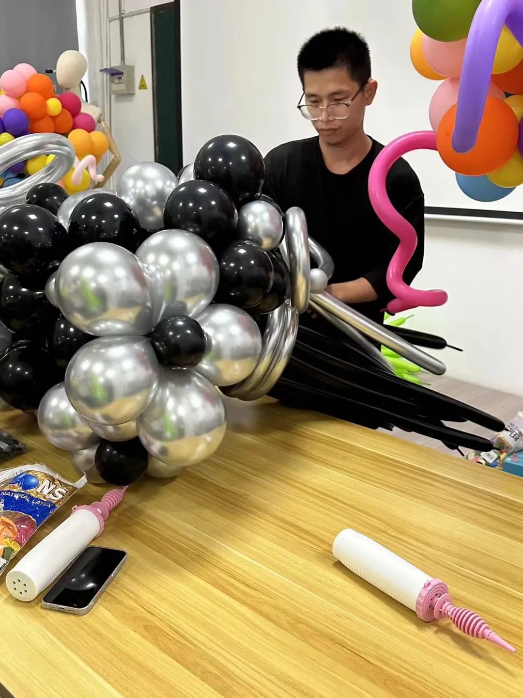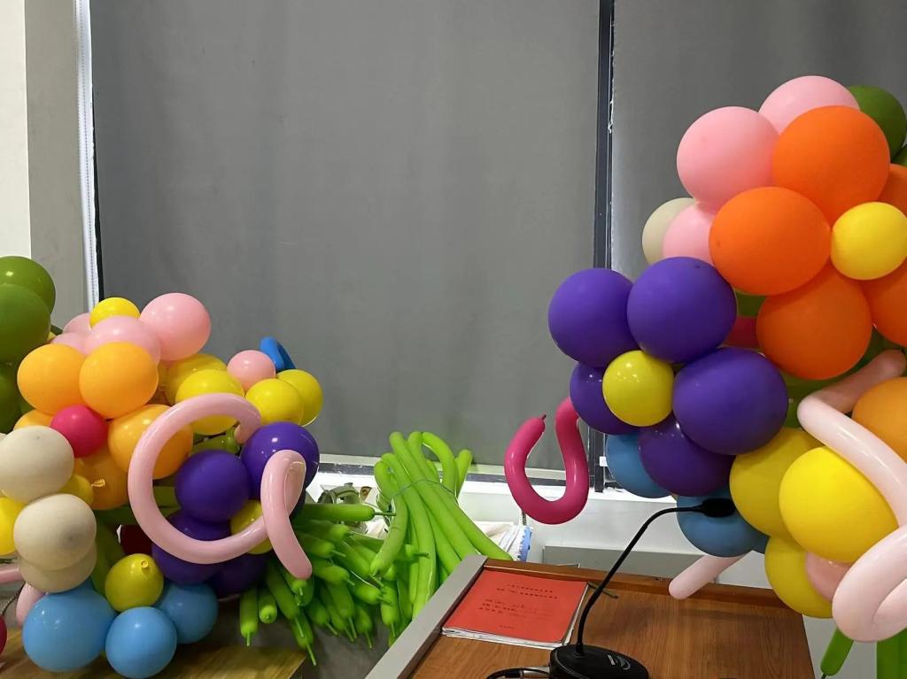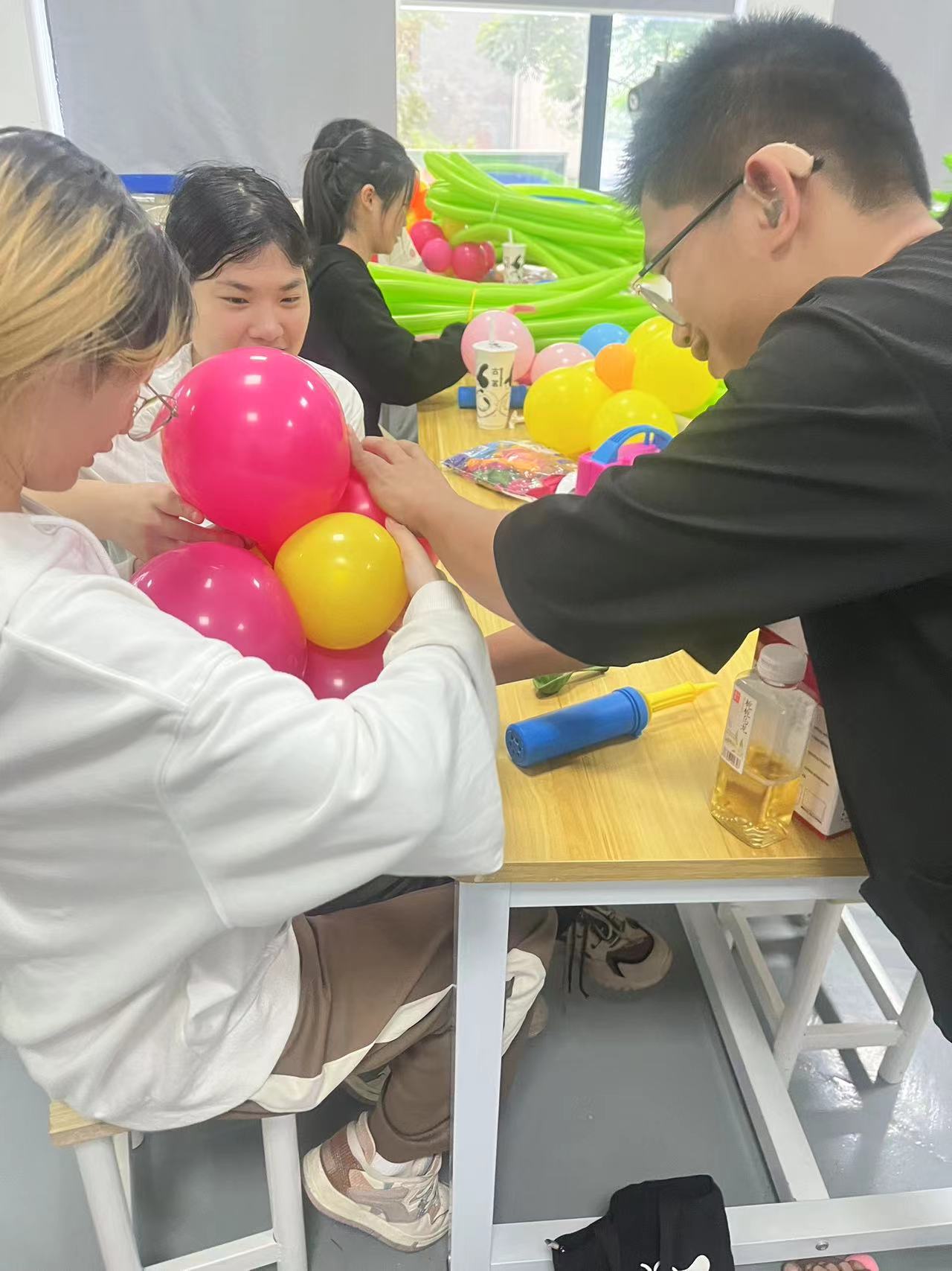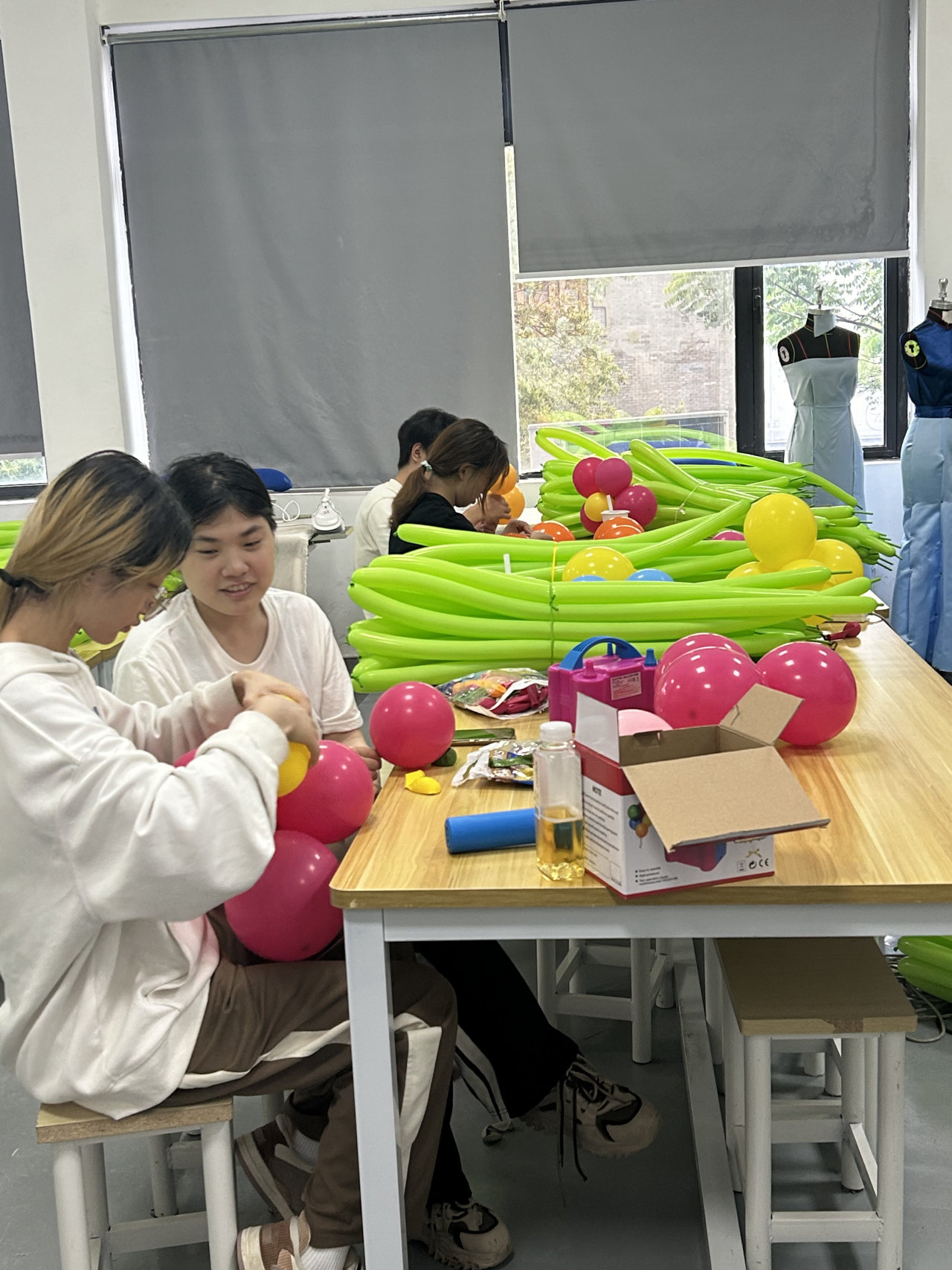 在陈振鸿学长的指导下,同学们充分发挥自己的想象力和动手能力,制作出了一个个充满创意和爱意的气球花束。